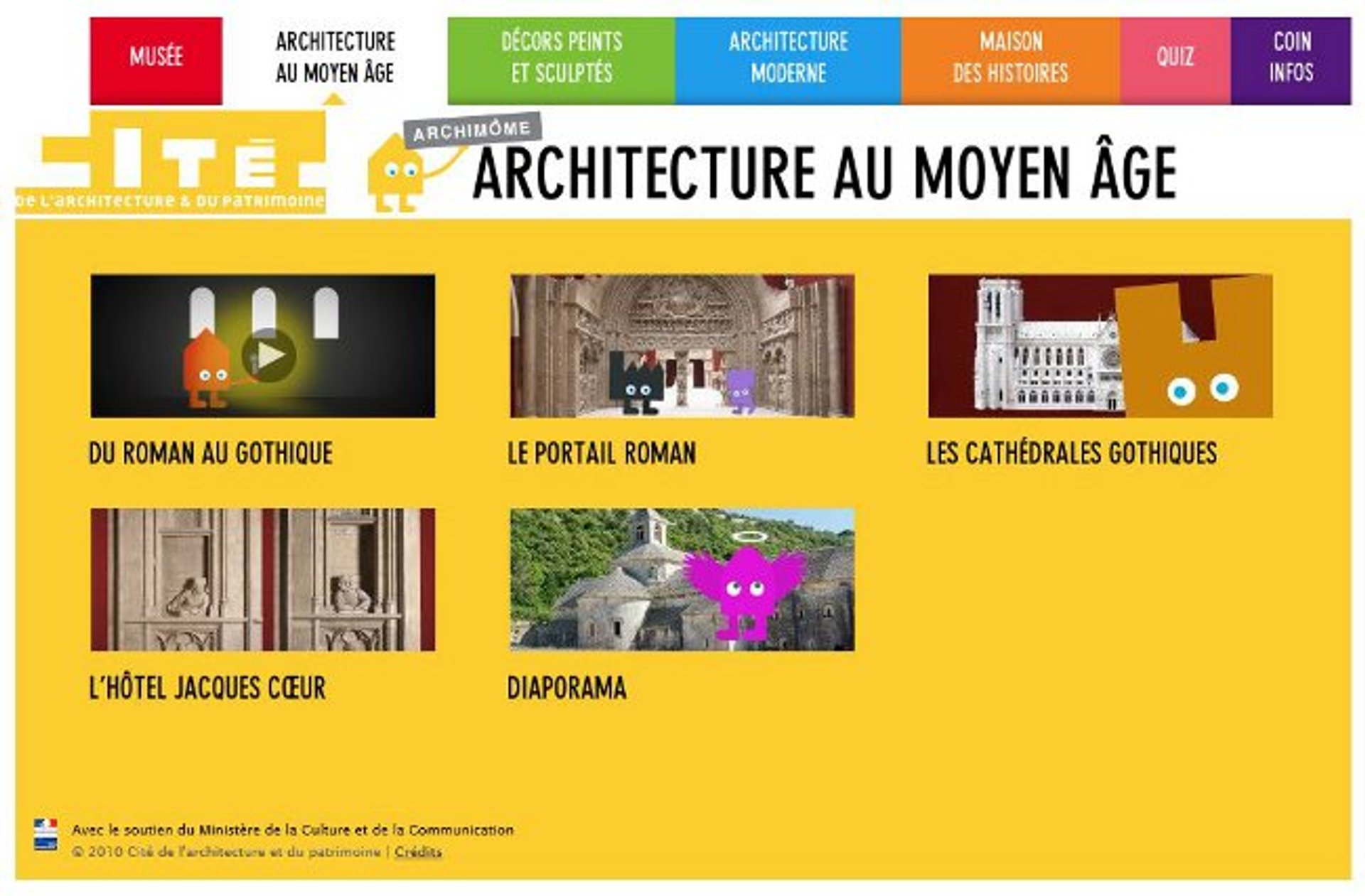 Différences entre une église romane et gothique, technique de la peinture murale, histoire de L’Ange au sourire de Reims, secrets des immeubles haussmanniens… Lancé en 2011 par la Cité de l’architecture et du patrimoine et le ministère de la Culture, le site Archimôme initie les enfants de 7 à 12 ans à l’histoire de l’architecture à travers des films d’animation divertissants, des zooms sur de célèbres bâtiments, des frises chronologiques et des quiz pour tester ses nouvelles connaissances.