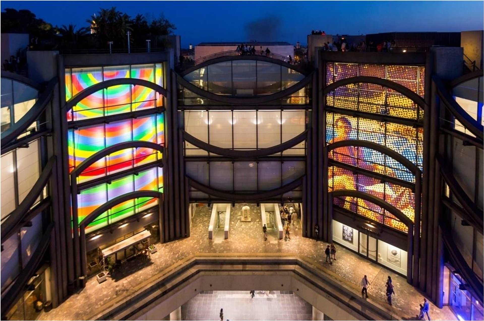 Vue du MAMAC avec Sol LeWitt, Wall drawing #1004 Arcs, 2002, don de la Fondation d’Entreprise Provence-Côte d’Azur en 2002 et Alain Jacquet, Déjeuner sur l’herbe (détail), 2005, don de l’artiste en 2005. Photo : Muriel Anssens/Ville de Nice. © Adagp, Paris