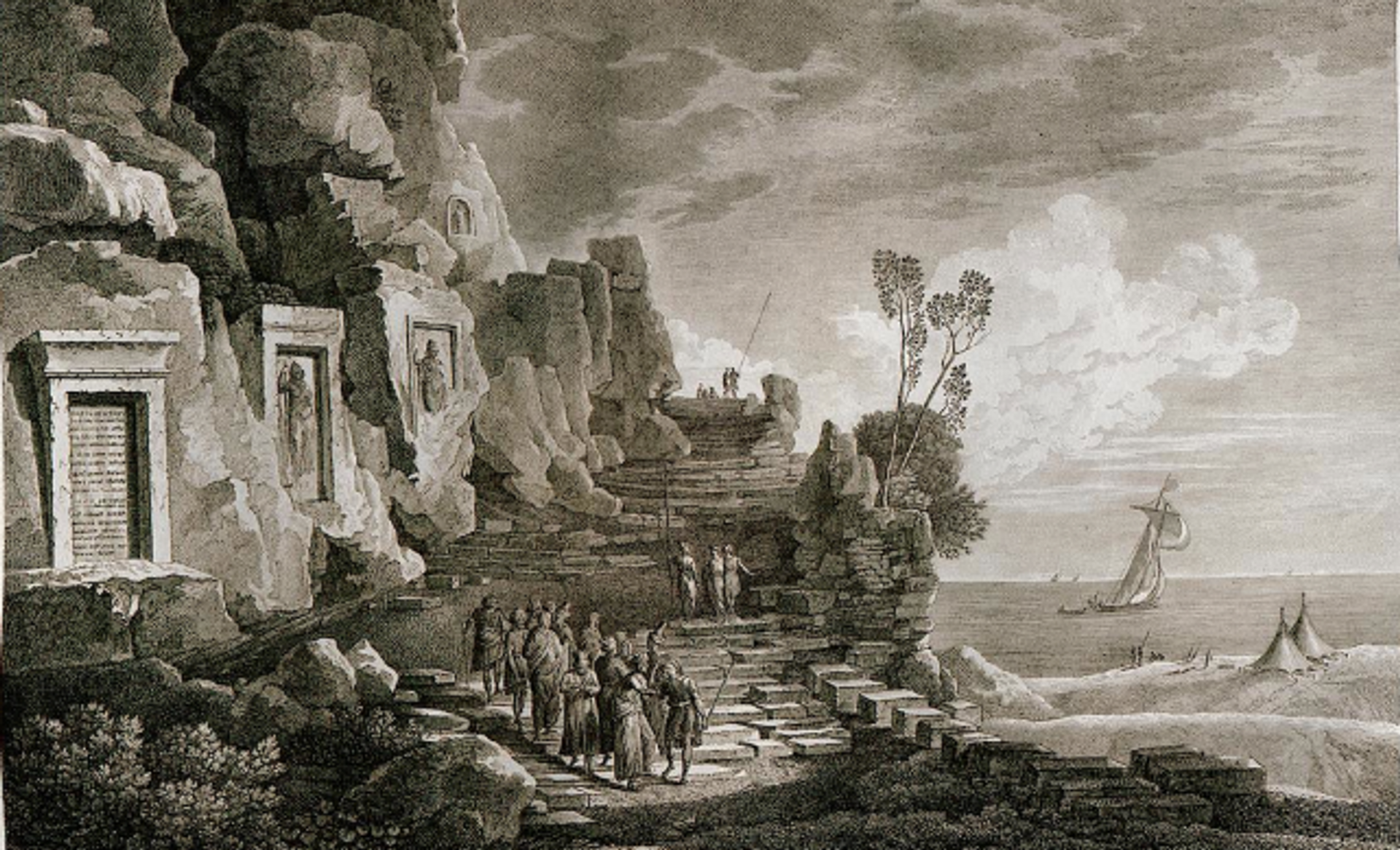 Le site de Nahr El- Kalb, gravure de Louis-François Cassas (1799). D.R.