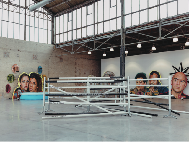 La commissaire de cette exposition, Lola Meotti, veut utiliser la surface des vitres « comme une peau recouverte d’un vinyle blanc qui rappelle les murs d’un white cube ». Celui-ci est découpé comme s’il s’agissait d’un immense passe-partout [ou d’une marie-louise] laissant apparaître les œuvres par les fenêtres. L’échelle du bâtiment et son implantation urbaine, à proximité d’un vaste carrefour, offrent une double visibilité – à la fois distante et proche, selon le mode de circulation pratiqué. Pour ses concepteurs, ce projet possède l’avantage d’être accessible à tous et de créer un autre type de lien social. Les trois artistes invités sont Claude Cattelain, Hicham Berrada et Hervé Charles.