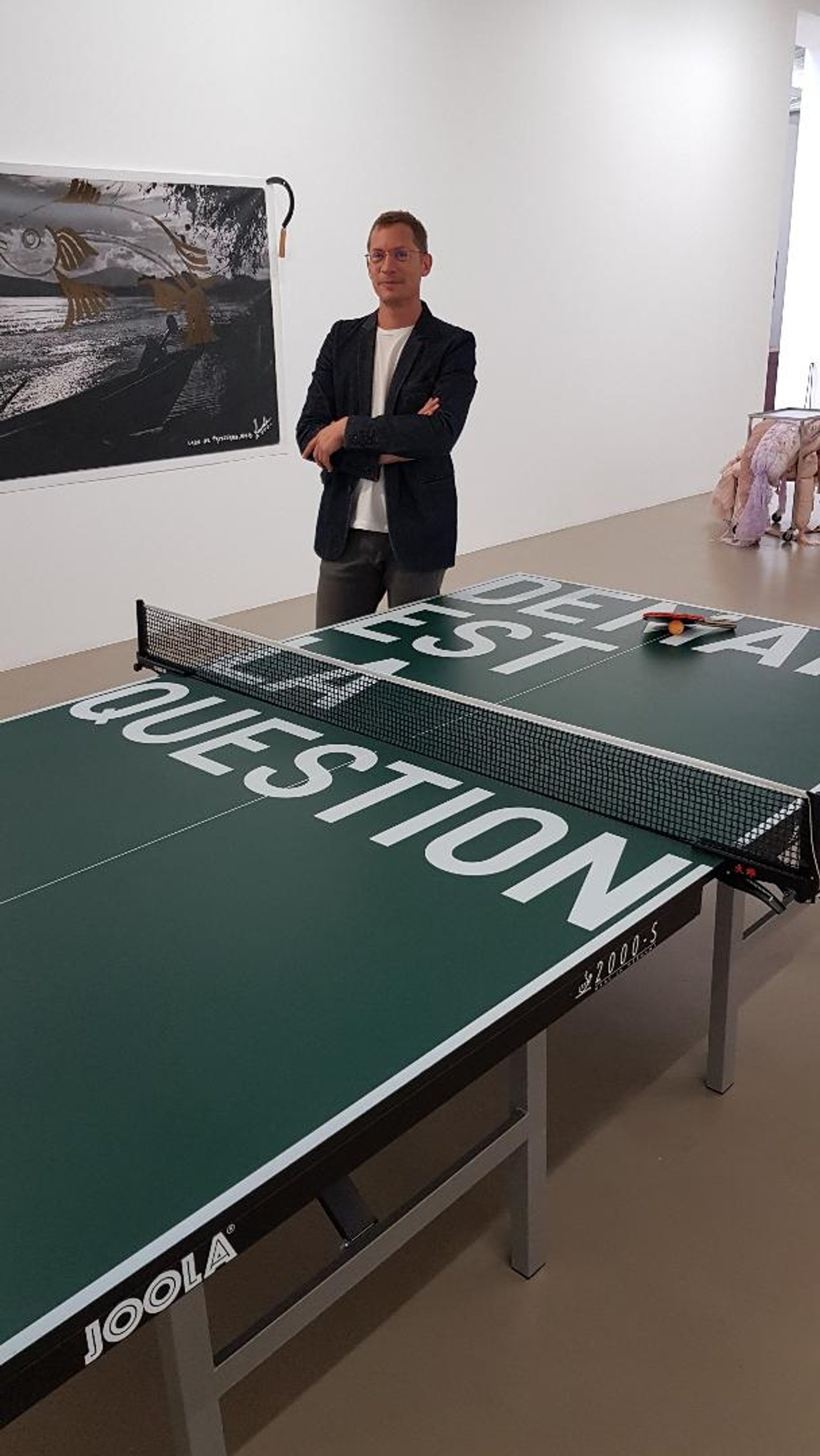 Chez Chantal Crousel, Niklas Svennung a conçu une exposition de groupe au titre parfaitement dans l’actualité : « Demain est la question ». Une sentence que l’on retrouve sur la table de ping-pong trônant dans la galerie, signée Rirkrit Tiravanija, une œuvre de 2015 qui renvoie, explique le directeur, « au thème de l’échange mais aussi sur comment interagir avec l’environnement », l’un des fils rouges de l’accrochage centré sur le rapport à la nature, d’un Églantier barbelé de Jean-Luc Moulène fait dans le Perche, « son premier objet fabriqué », précise Niklas Svennung, aux Fleurs fantômes de Gabriel Orozco.
