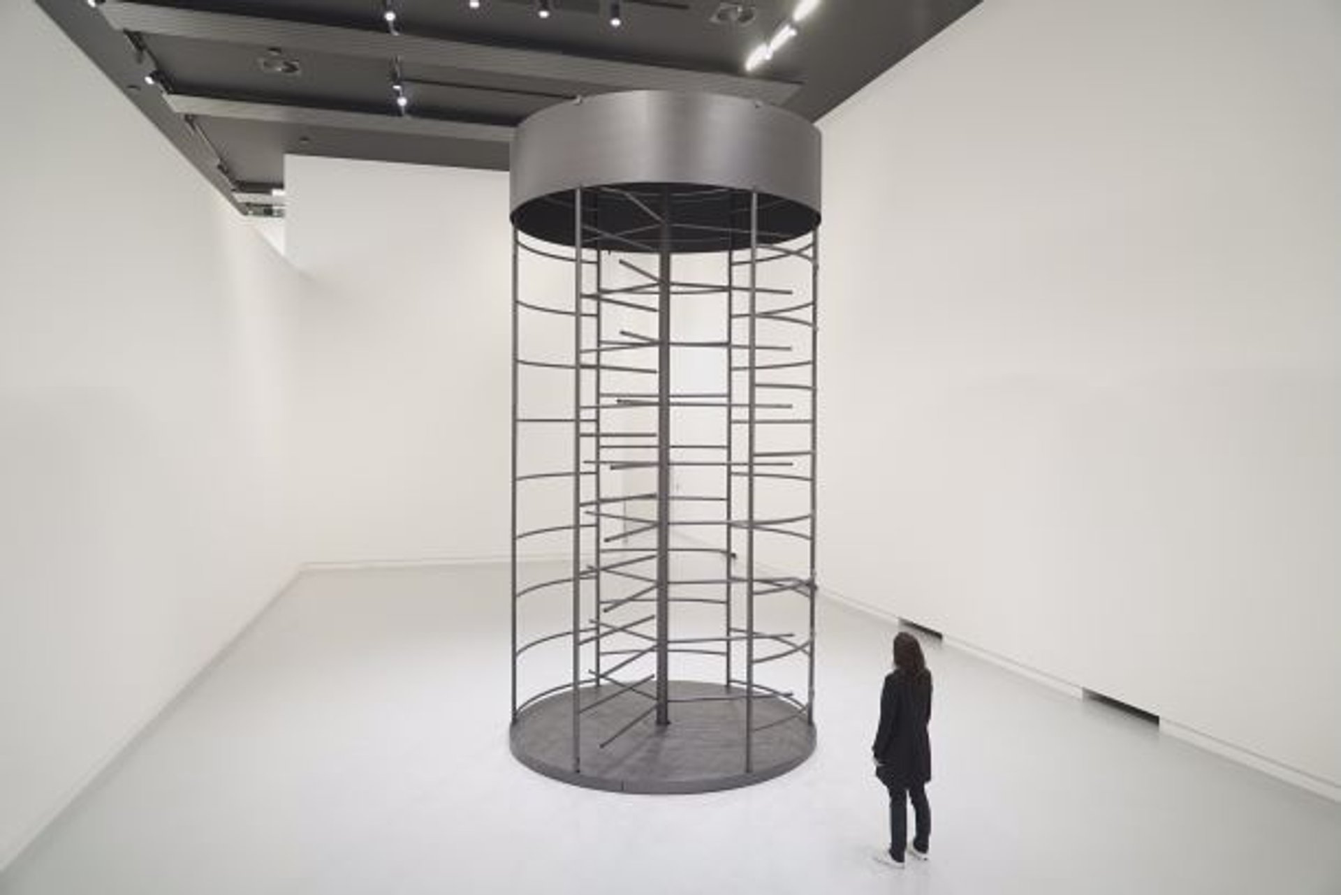 Brognon Rollin, Cosmographia (île de Gorée), 2015, étagère en Inox contenant 3066 calques formant la circonférence de l’île de Gorée à l’échelle 1 : 1. Vue de l’exposition du 17e prix de la Fondation d’entreprise Ricard, Paris. © Brognon Rollin