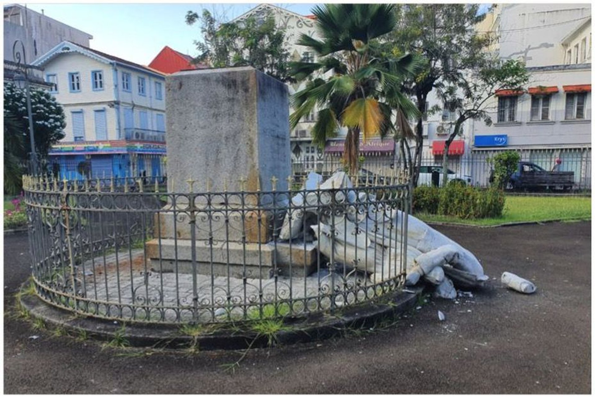 Statue de Victor Schoelcher détruite à Fort-de-France. D.R.