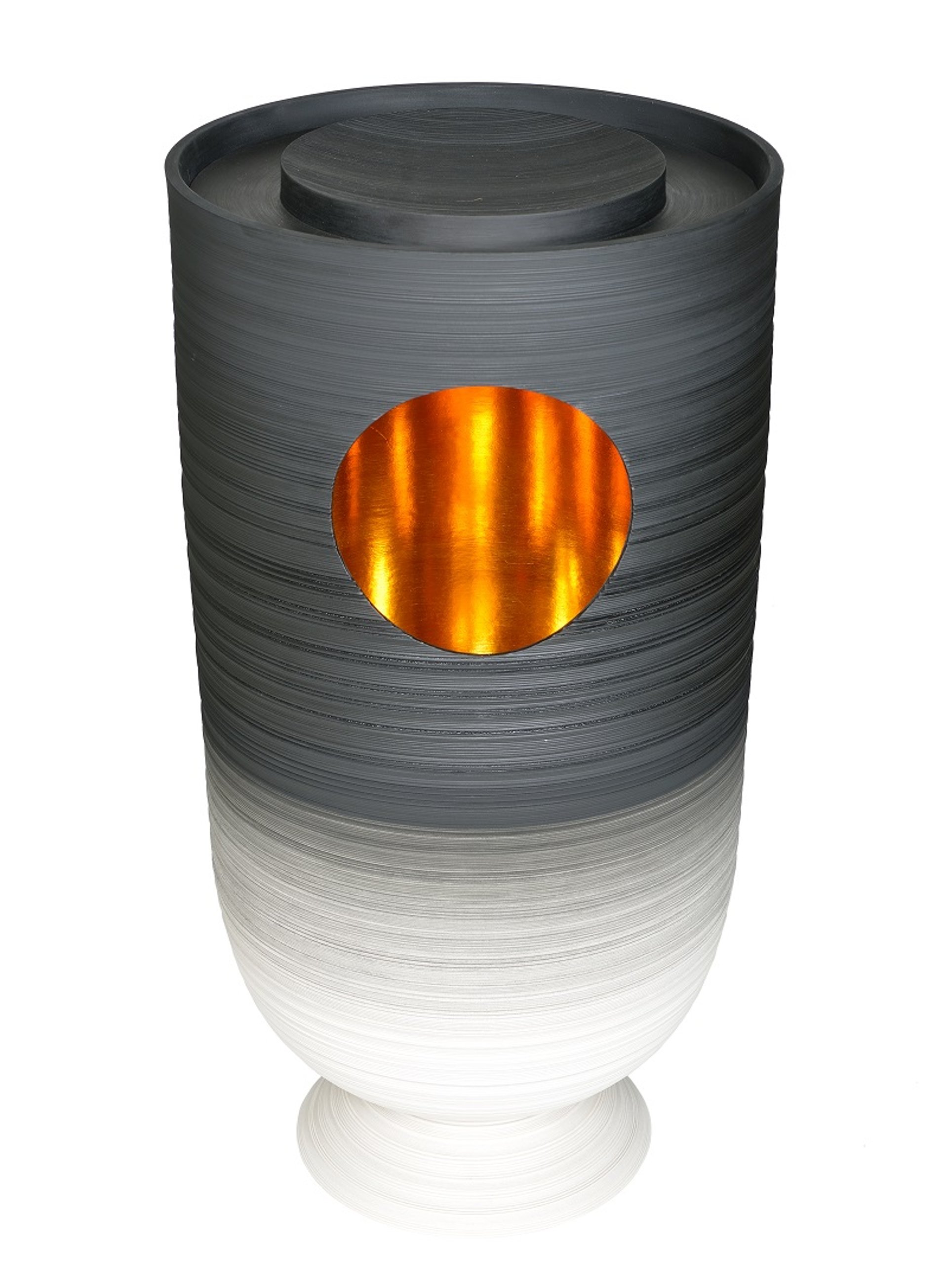 Pierre Soulages, Vase en biscuit émaillé et doré, 2000, 66 x 34,5 cm, Manufacture nationale de Sèvres, dépôt, musée Soulages Rodez. Photo : T. Estadieu. Courtesy Musée Soulages Rodez, D.R.