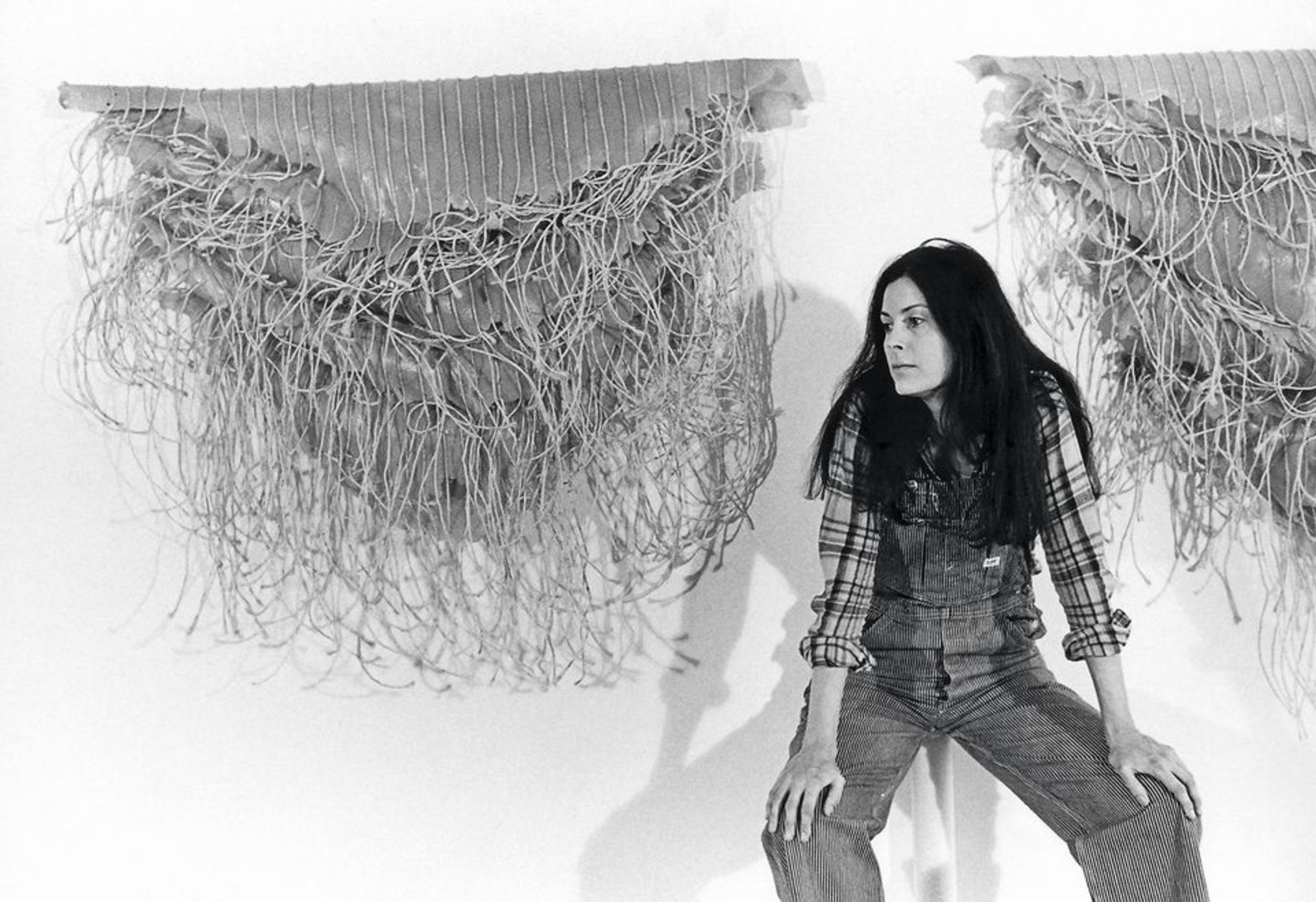 Hannah Wilke devant l’une de ses œuvres. © Marsie, Emanuelle, Damon and Andrew Scharlatt ; Hannah Wilke Collection & Archive ; VAGA at ARS