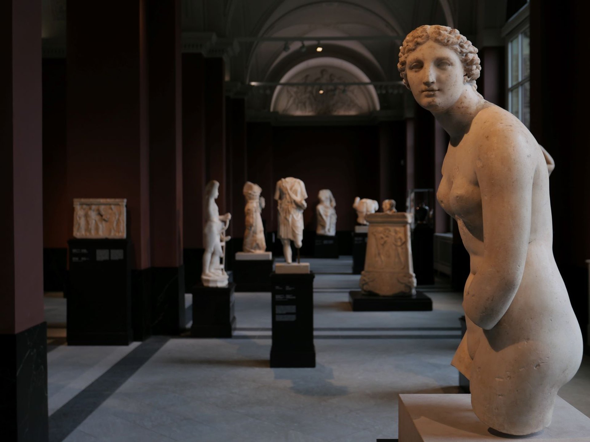 Après un si long sommeil en réserve, l’accès à ces œuvres est l’une des meilleures surprises de la réouverture. Les Antiques, acquis pour partie à Rome au sein de collections aussi prestigieuses que celles des cardinaux Flavio Chigi ou Alessandro Albani, retrouvent la lumière, dans une salle initialement conçue pour accueillir la gypsothèque d’Anton Raphaël Mengs. À la faveur d’un éclairage dramatique tout à fait saisissant, il est enfin possible d’admirer ces marbres de Dresde dont la contemplation avait inspiré au jeune Winckelmann ses Réflexions sur l’imitation des œuvres grecques […], motivant même son départ pour Rome. Dans ces pages fondatrices pour la pensée de l’art, il rendait un hommage inoubliable à la grâce et l’élégance de trois « Vestales », dite Herculéennes. Celles-ci constituent encore et depuis 1736 le fleuron des collections saxonnes, après avoir successivement orné — rien moins que — le théâtre d’Herculanum et le palais viennois du Prince Eugène.