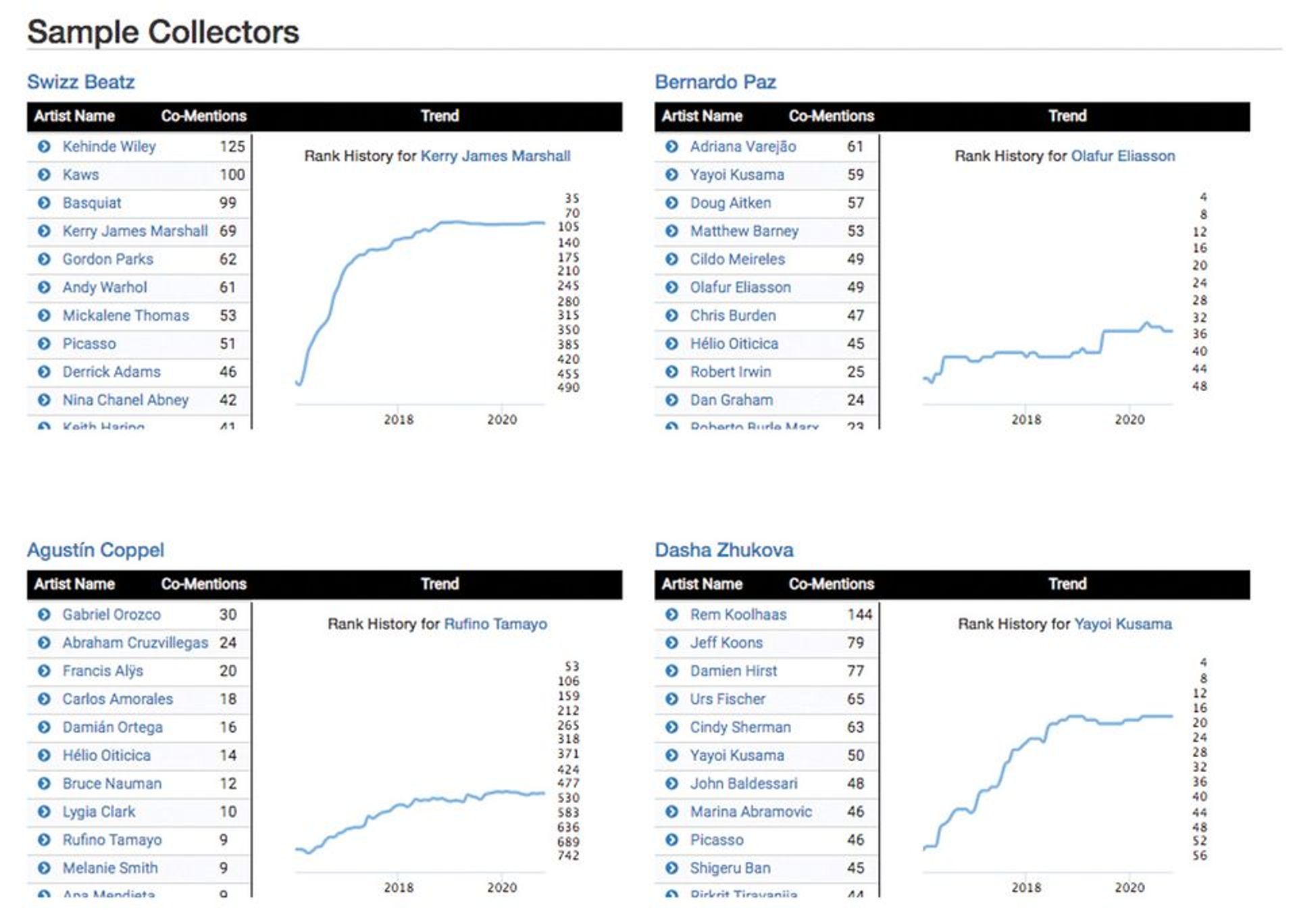 Phillips s’est associé avec Articker, une plateforme d’analyse de données qui parcourt en permanence plus de 60 000 publications pour identifier les artistes qui bénéficient du plus grand nombre d’articles. Courtesy Phillips et Articker