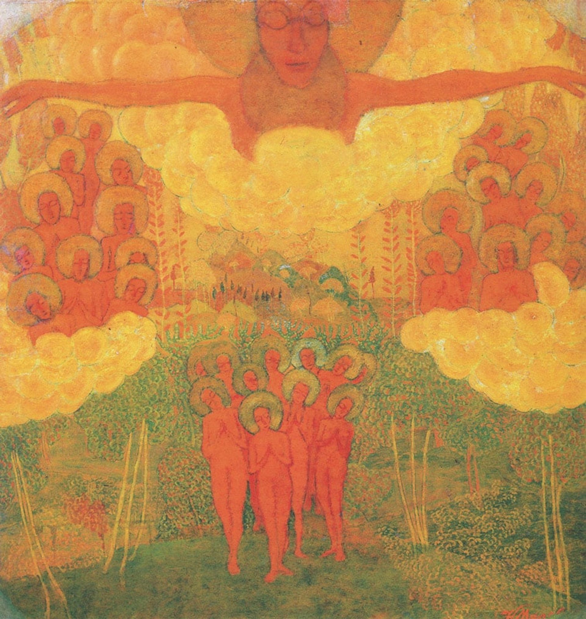 L’autre fondateur du symbolisme pictural est Victor Borissov-Moussatov (1870-1905), qui interprète l’impressionnisme dans des touches vaporeuses, entourant les êtres et les choses d’un halo mystérieux. Ses peintures sont des élégies dont les femmes sont les personnages presque uniques, des méditations sur la vie et la mort, l’écoulement du temps, le néant. Malévitch a connu une période stylistique symboliste entre 1907 et 1911, avec sa « série des jaunes » tendant à la monochromie et une thématique christique-bouddhique à la manière d’Odilon Redon.