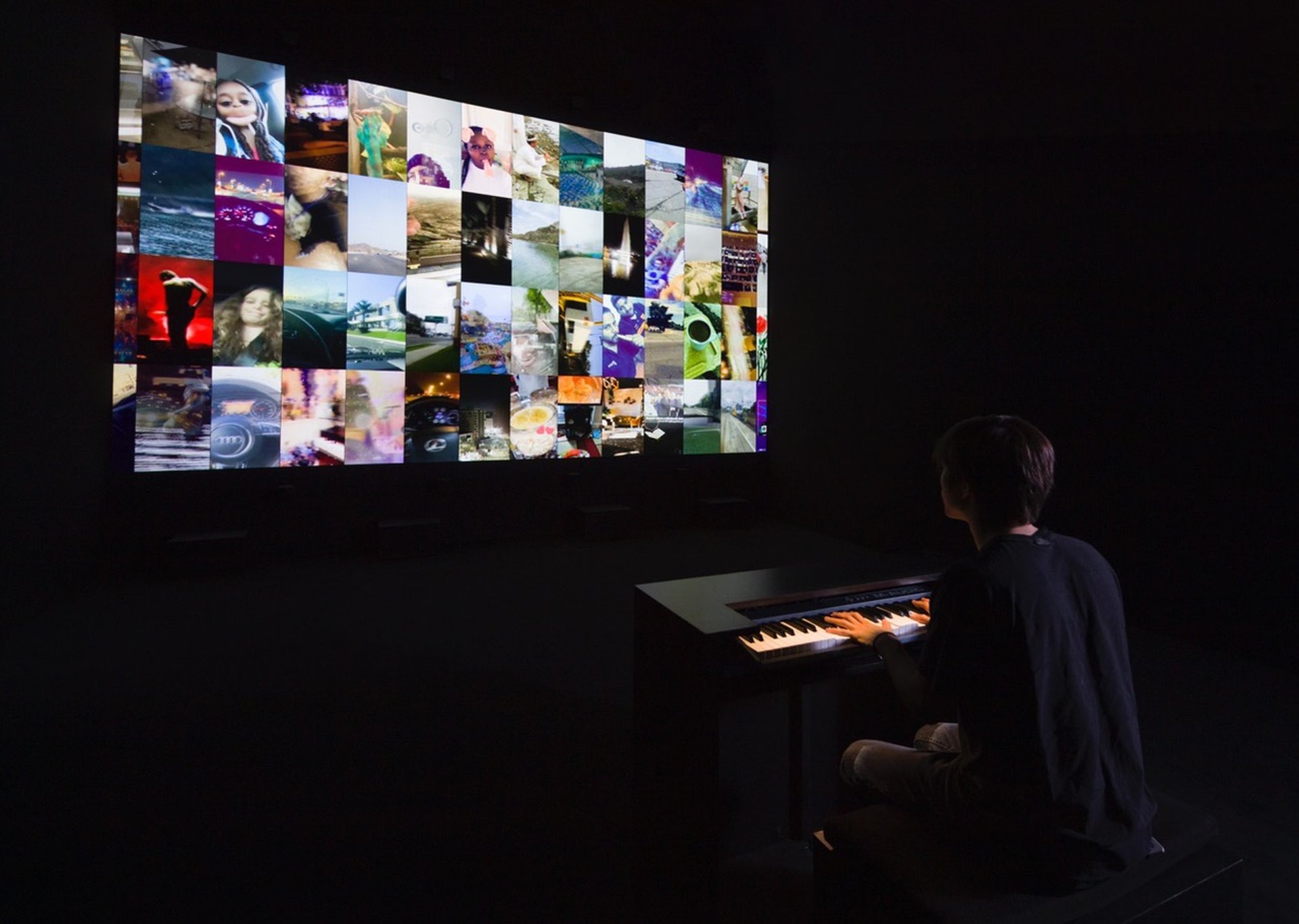 Cela m’avait étonné car je suis totalement absent des réseaux sociaux. Je savais à peine ce qu’était Snapchat et encore moins comment cela fonctionne. J’ai donc été surpris et curieux d’apprendre que les responsables de Snap avaient contacté ma galerie à Londres parce qu’ils avaient vu The Clock. Ils voulaient me commander une pièce similaire, d’une durée de 24 heures. Je leur ai répondu que cela ne m’intéressait pas de refaire quelque chose comme The Clock. En revanche, j’avais très envie de travailler avec les bandes-sons des milliards de petites vidéos postées par les gens. Ses ingénieurs ont donc développé des algorithmes capables de récupérer des éléments intéressants parmi les trois milliards de Snapchats réalisés chaque jour. À partir de ce matériel, j’ai élaboré des compositions sonores. Une de ces compositions audiovisuelles consistait en un montage synchronisé sur dix iPhone de toutes sortes de sons « concrets », par exemple produits par des personnes qui font du skateboard ou des chiens qui aboient. Il y avait aussi un orgue, dont chaque touche déclenchait des notes puisées dans ces minifilms. L’installation Sound Stories ne devait être à l’origine présentée que pendant cinq jours dans le cadre d’un symposium sur la créativité à Cannes. Mais nous avons trouvé dommage de ne pas l’exposer au public plus longtemps. Le Lacma [Los Angeles County Museum of Art] voulait faire un projet avec moi. Je leur ai proposé Sound Stories, ce qui faisait d’autant plus sens que Snap est basé à Los Angeles.