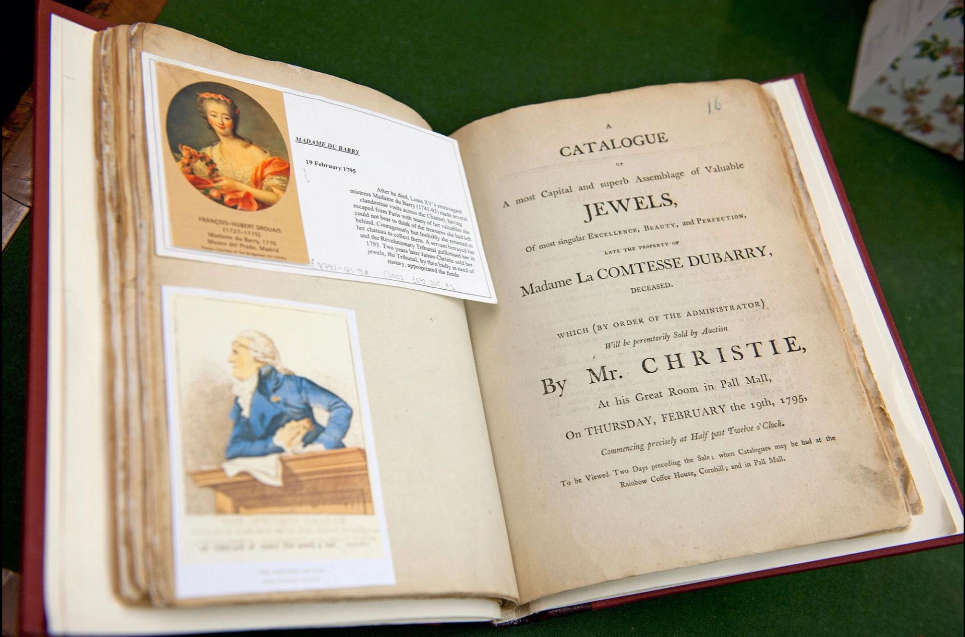 Catalogue de la vente de la collection de bijoux de Madame du Barry, le 19 février 1795, conservé dans les archives de Christie's. Courtesy of Christie's, D.R.