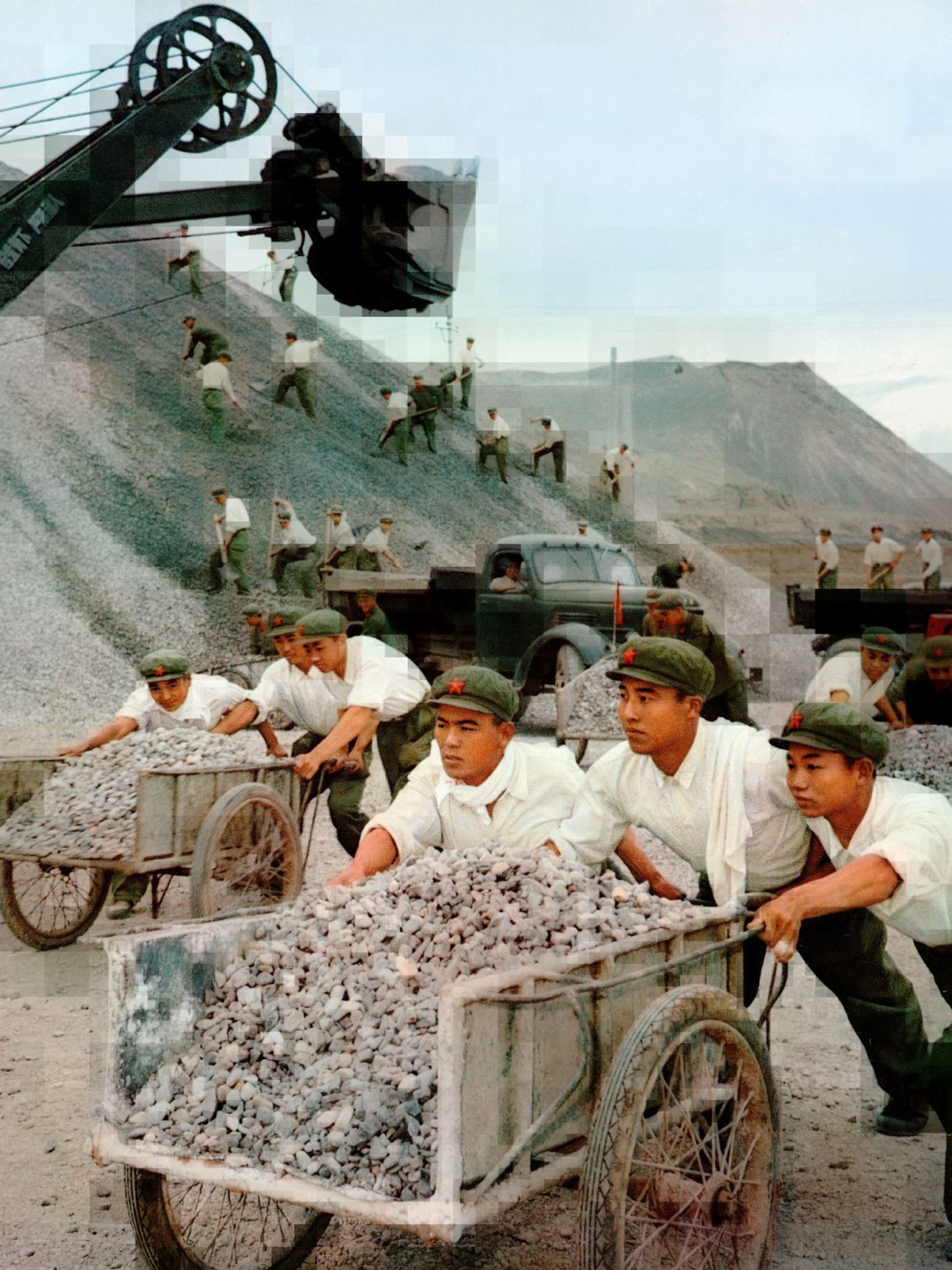 Le titre de travail des tableaux chinois était La Chine à l’âge de la digitalisation. Il me semble qu’en termes de technologie, la Chine est au même niveau que les pays du monde occidental industrialisé. C’est la raison pour laquelle je voulais recourir aux pixels. Mais, d’un point de vue idéologique, les Chinois sont toujours dans les années 1960 ou 1970, avec leur parti unique et leur président. Je voulais montrer cette schizophrénie. Dès qu’une nouvelle technologie apparaît, le gouvernement chinois l’utilise pour contrôler la population…