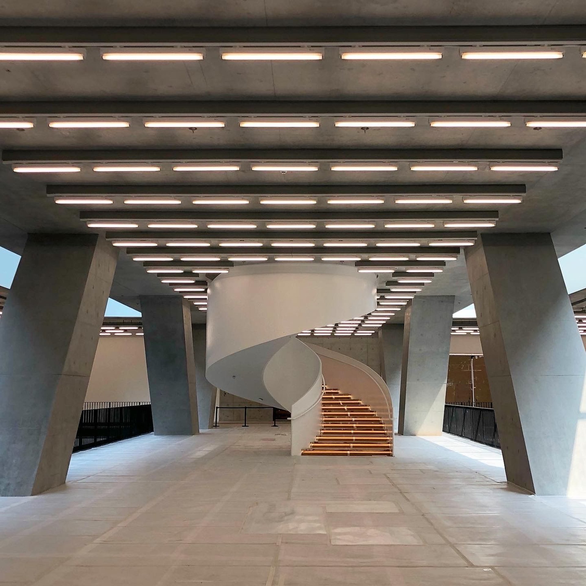 Escalier conduisant au jardin de sculptures sur le toit-terrasse du M+, à Hongkong. Photo: Vivienne Chow