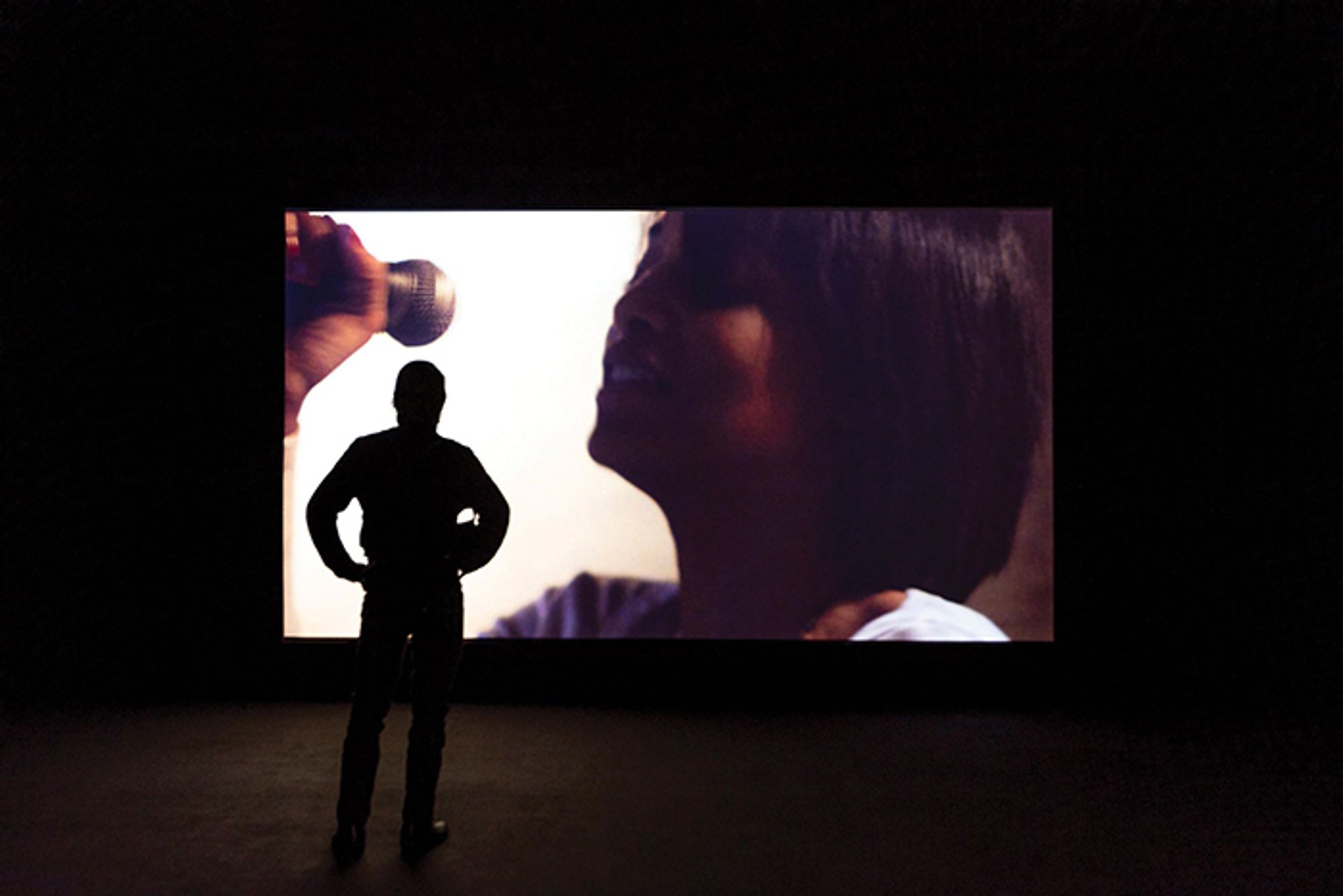 Vue de l’installation de l’œuvre vidéo de Kahlil Joseph BLKNWS au Huntington, à San Marino. Photo : Joshua White / JWPictures.com