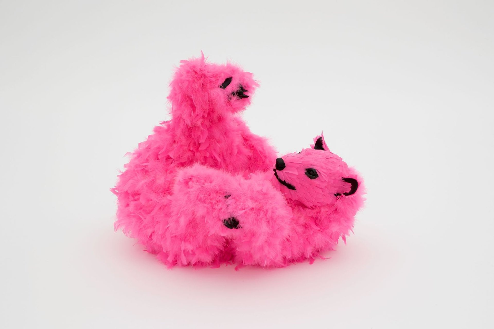 Paola Pivi, Mama no more diapers, please, 2019, mousse uréthane, plastique, plumes, 53,3 x 45,7 x 30,6 cm. © Photo : Guillaume Ziccarelli. Courtesy the artist & Perrotin.
