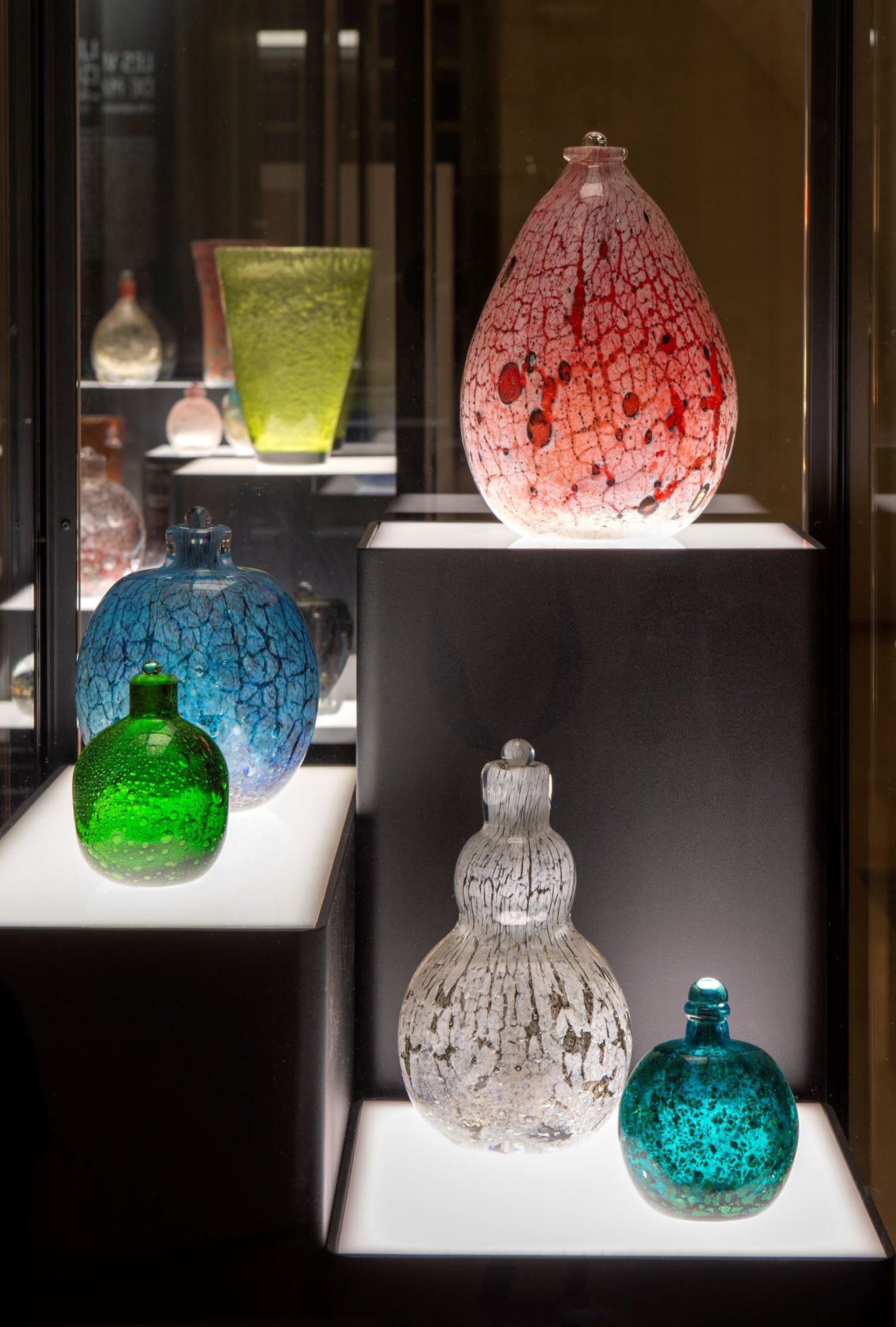 Salle « passion du collectionneur » : ensemble de verres de Maurice Marinot, années 1920-1930. © Fontevraud, le musée d’Art moderne. Photo : Marc Domage