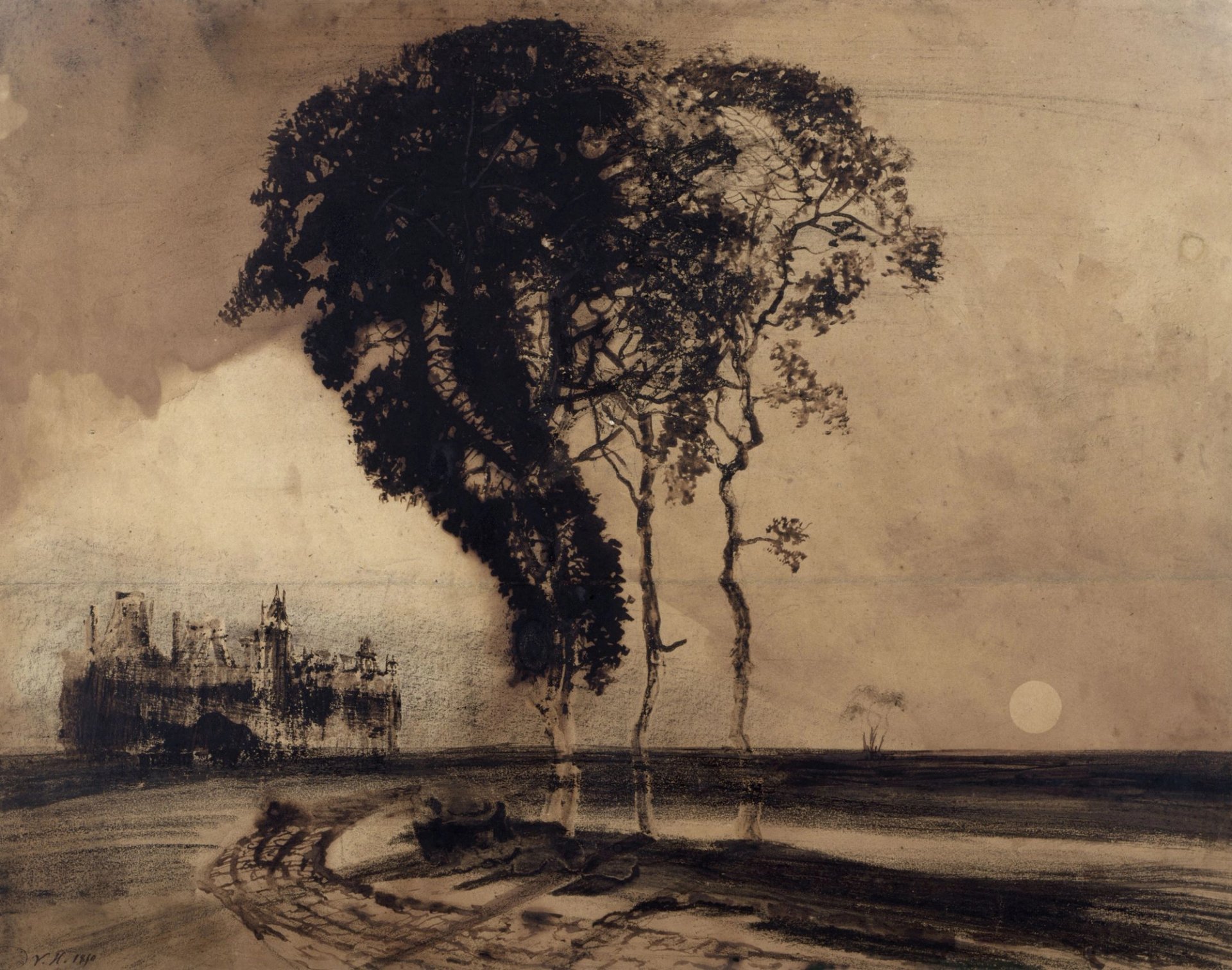 Victor Hugo, Paysage aux trois arbres, 1850, plume, lavis, encre et crayon. © Maison de Victor Hugo - Hauteville House/ Paris Musées