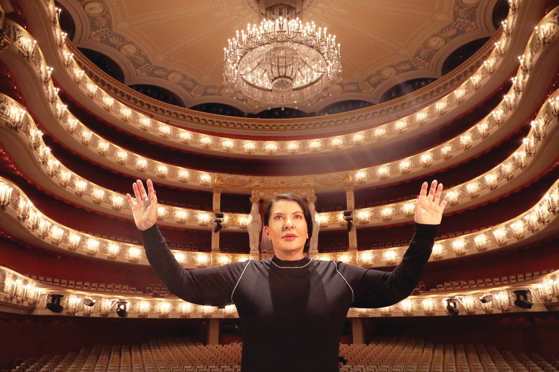 Marina Abramovic sur la scène du Bayerische Staatsoper à Munich, où la première de "7 Deaths of Maria Callas" a été présentée le 11 avril 2020. © Wilfried Hösl