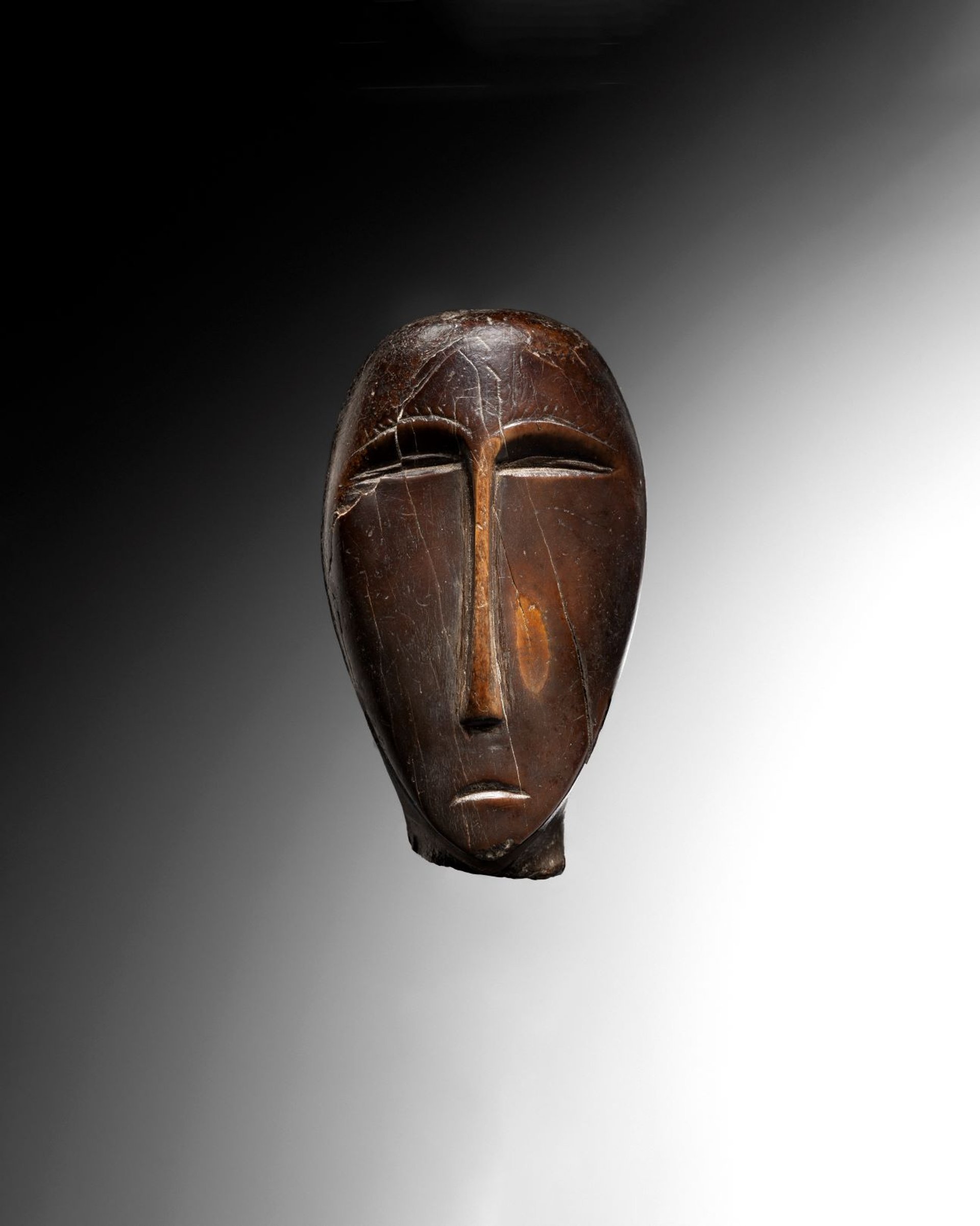 Grande Tête sculptée, Okvik, Eskimo archaïque, Alaska, 200 av .J.-C. - 100 ap. J.-C., ivoire de morse fossile. © Galerie Flak, Paris