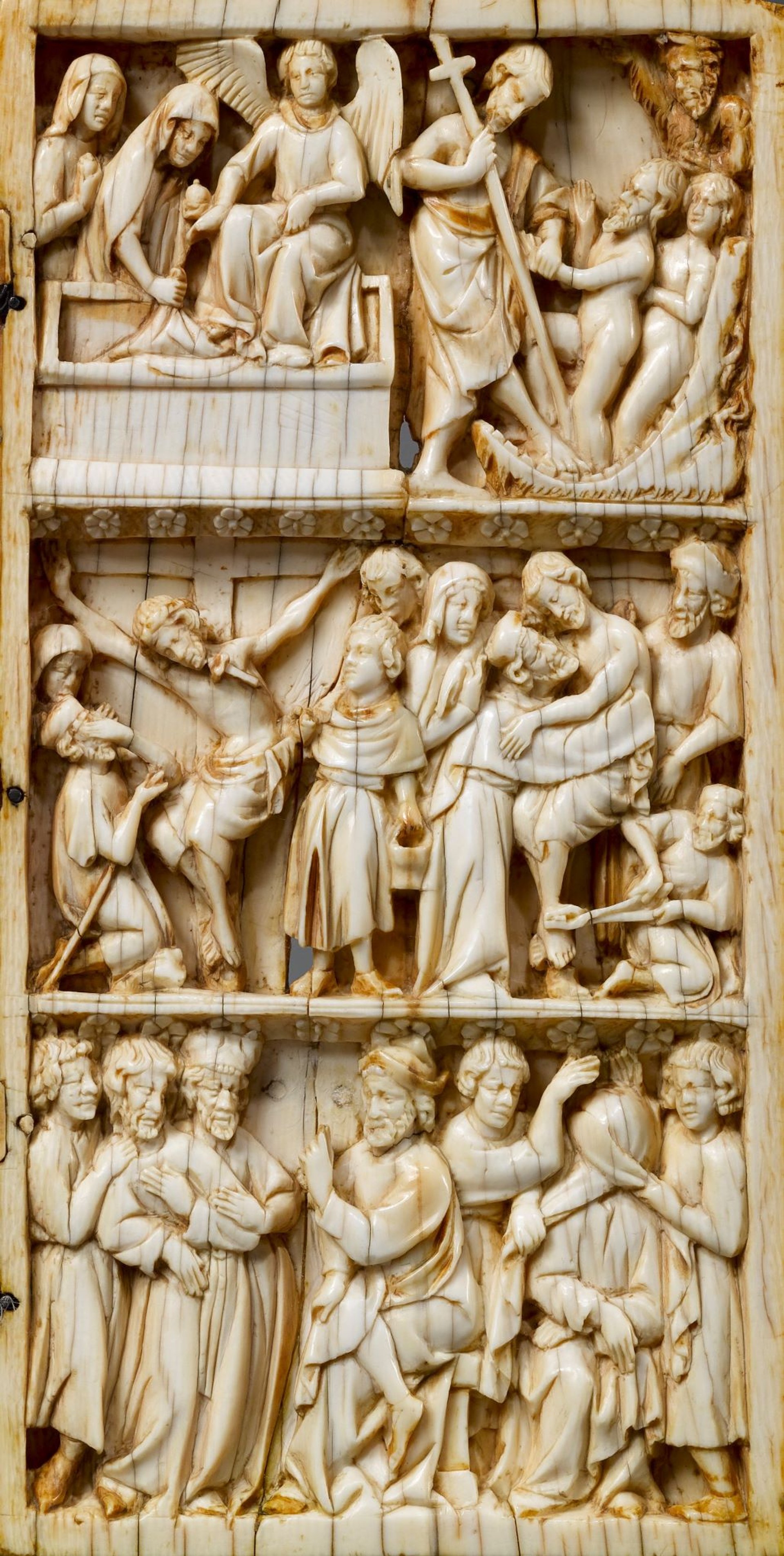Scènes de la Passion du Christ, volet droit d'un diptyque en ivoire, vers 1280, 18,4 x 9,2 cm. Courtesy galerie Brimo de Laroussilhe