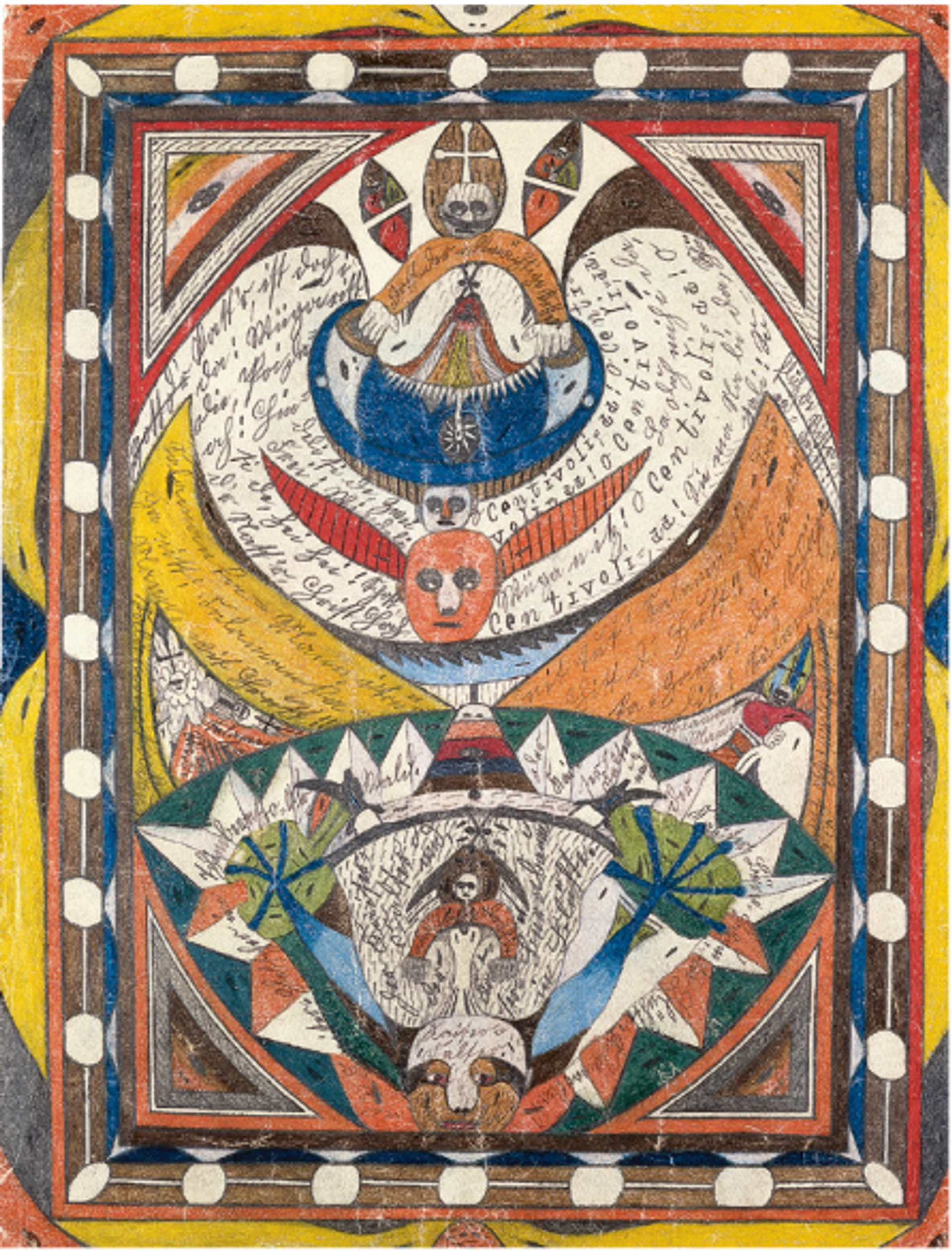 Adolf Wölfli, Sans titre, 1916, mine de plomb et crayon de couleur sur papier, recto verso, inscriptions au dos. © Centre Pompidou Photo César Decharme