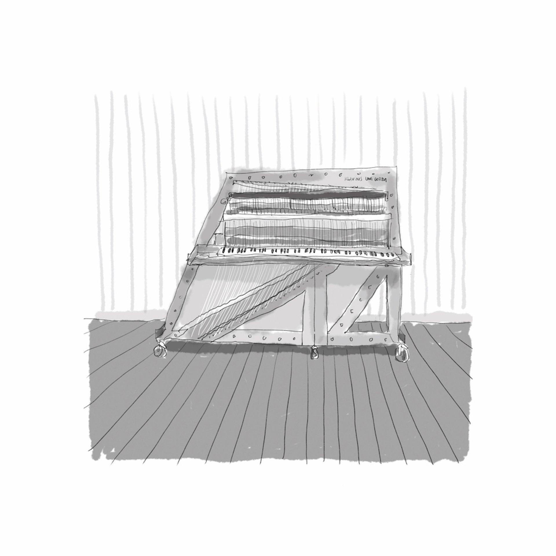 Albin de la Simone, Una corda, non daté, crayon sur papier. © Albin de la Simone (Le piano droit sur lequel joue Albin de la Simone est doté d'une seule corde par touche.)
