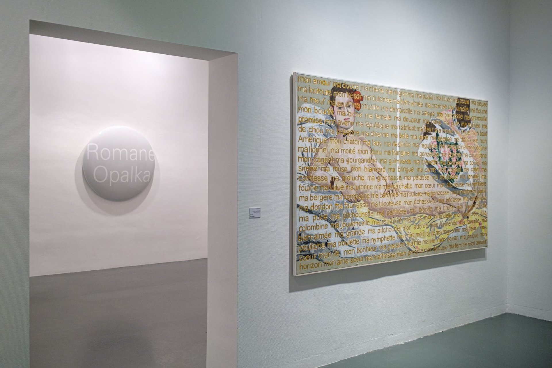 Vue de l’exposition d’Agnès Thurnauer. À gauche, au fond: le Portrait Grandeur Nature de Romane Opalka; à droite, dans la première salle, l’œuvre Olympia, de la série Peintures d’Histoire. Photo: D.R.