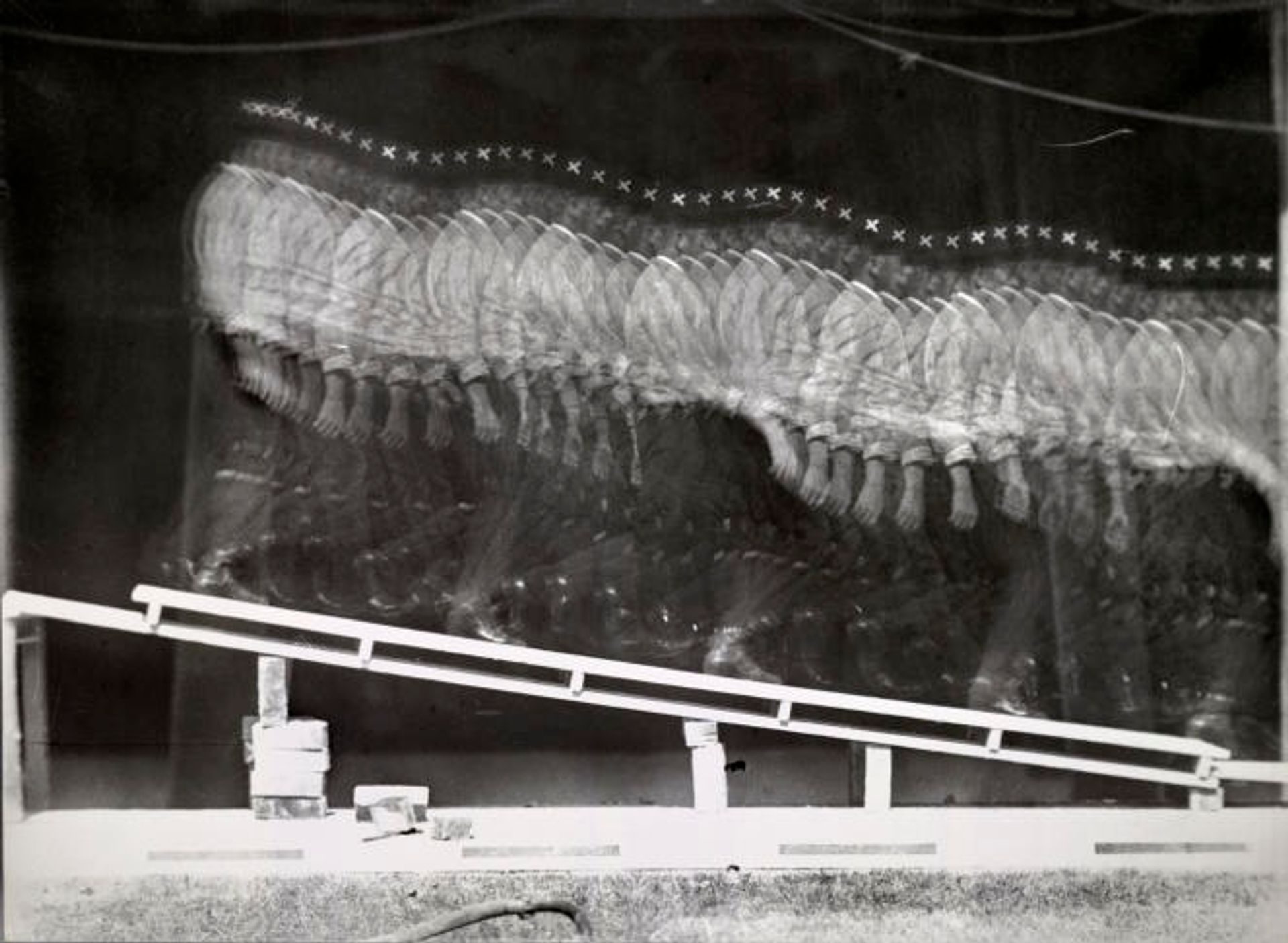 Jules-Etienne Marey, Descente d’un plan incliné, 1882, négatif sur plaque de verre positive au gélatino-bromure d’argent, 18,2 × 23,9 cm, France, Paris, Cinémathèque Française. Photo © Collection La Cinémathèque française