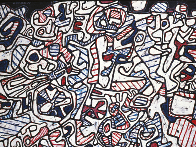 La galerie François Léage, située rue du Faubourg Saint-Honoré, dans le 8e arrondissement de Paris, accueille jusqu’au 11 décembre une exposition d’œuvres de Jean Dubuffet, en collaboration avec le galeriste Daniel Gervis, cofondateur de la FIAC. Les travaux de l’artiste dialoguent avec des pièces de mobilier ancien du XVIIIe siècle signées des plus grands ébénistes, tels Adam Weisweiler, Georges Jacob, Jean-François Oeben, Jean-Henri Riesener, Pierre IV Migeon... Ainsi, le patchwork d’un tableau de la période Coucou Bazar fait écho au puzzle d’une commode Louis XV en laque de Coromandel. Des sculptures de l’artiste répondent aux courbes d’un meuble Rocaille. Des tableaux plus sombres exécutés peu avant sa mort par Dubuffet sont associés à la marqueterie Boulle d’une commode Régence produite sous Louis XIV. Un dialogue formel qui, souvent, fait mouche. A.C.