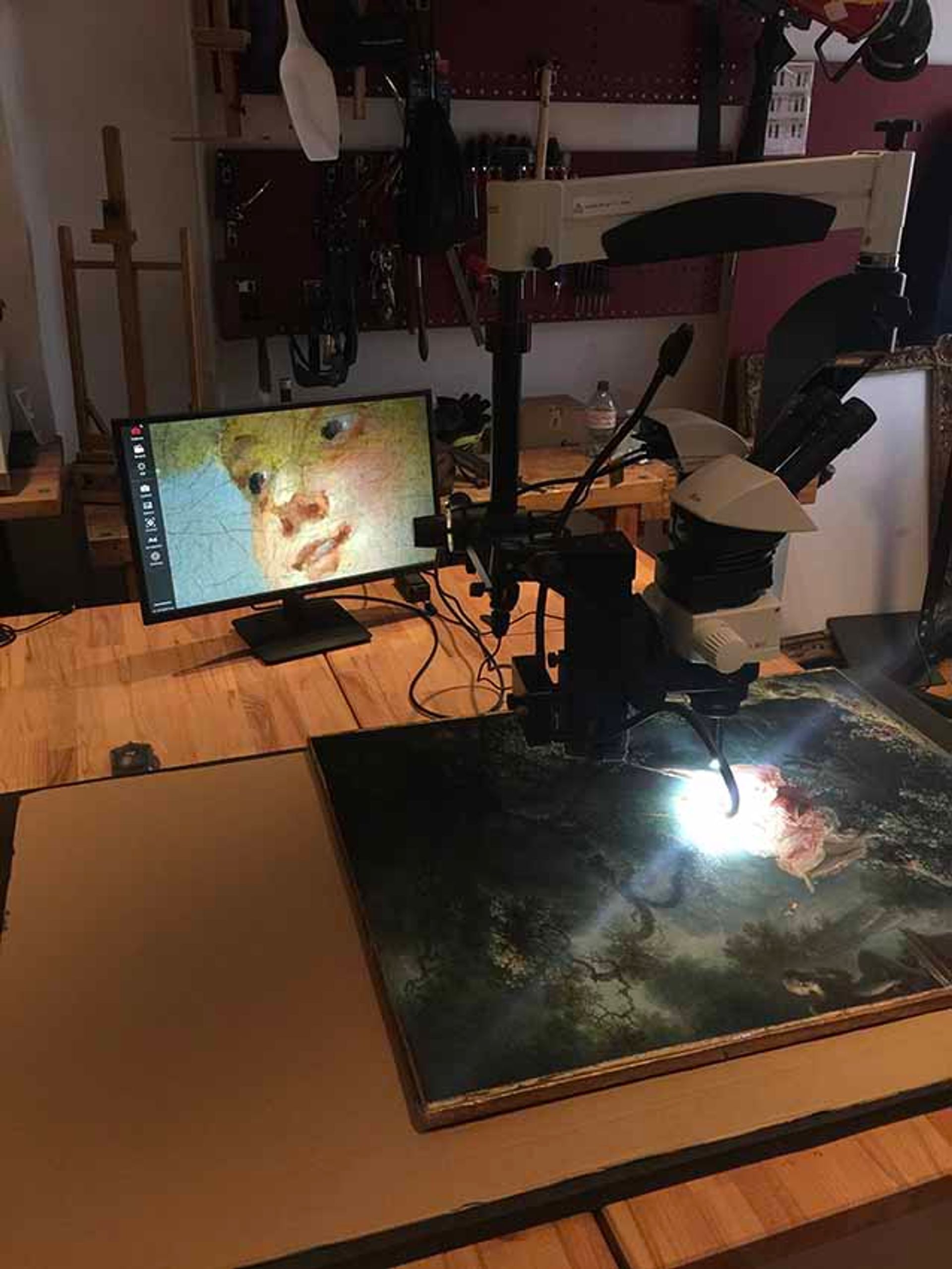 Le vernis jauni de Les Hasards heureux de l’escarpolette avant restauration. © Wallace Collection, Londres