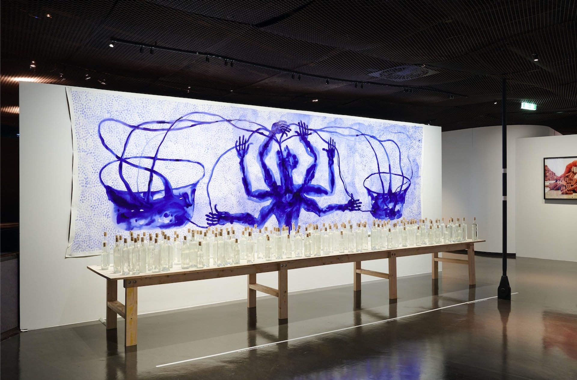 Barthélémy Toguo, Water Matters, 2020, installation. Vue de l’exposition « Désir d’humanité. Les univers de Barthélémy Toguo », musée du quai Branly – Jacques Chirac, Paris. © Barthélémy Toguo, courtesy Bandjoun Station et galerie Lelong & Co., Paris