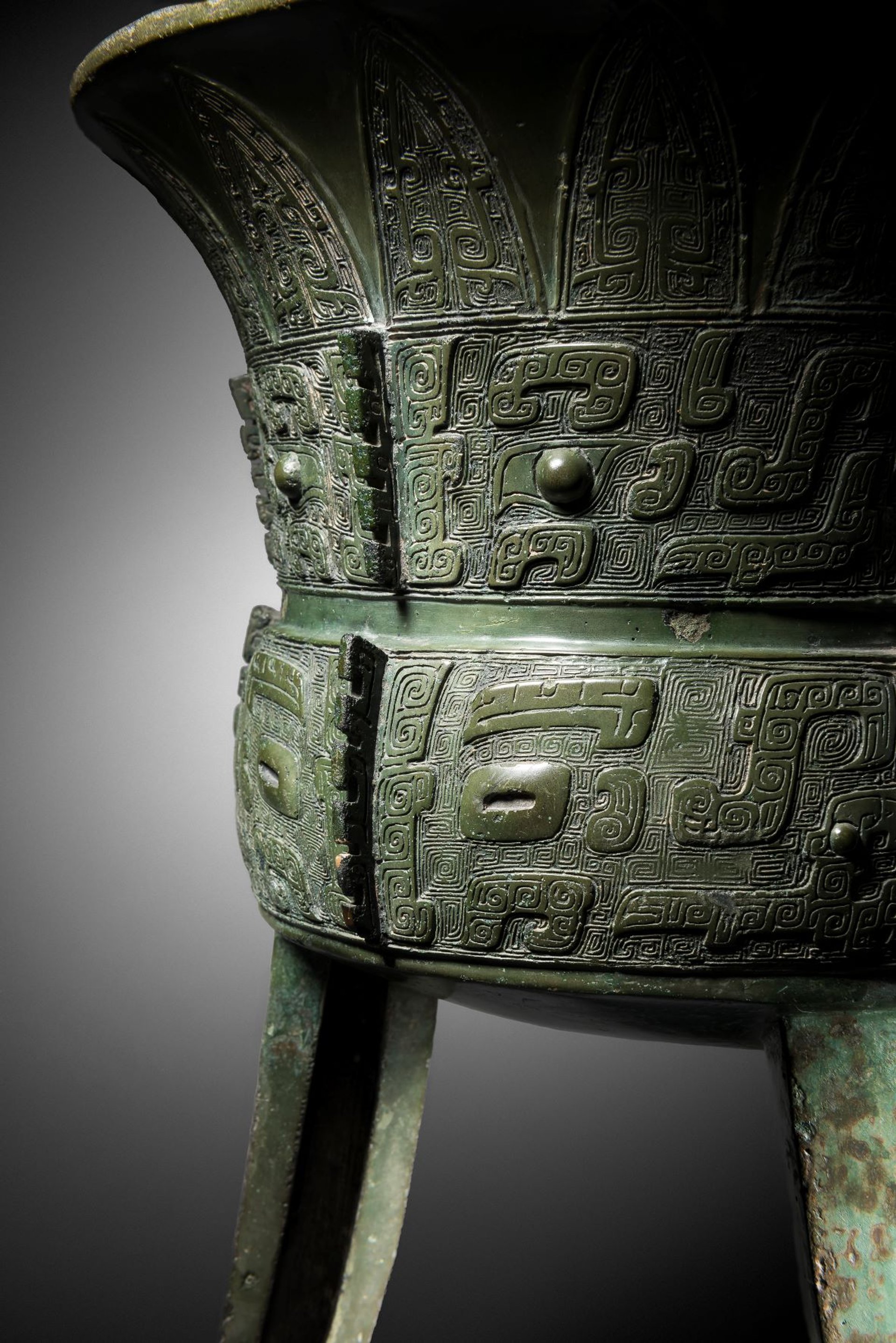 Vase à boissons fermentées de forme « jia », Chine, dynastie Shang, période d’Anyang, XIVe-XIie siècle avant J.-C. © Galerie Christian Deydier