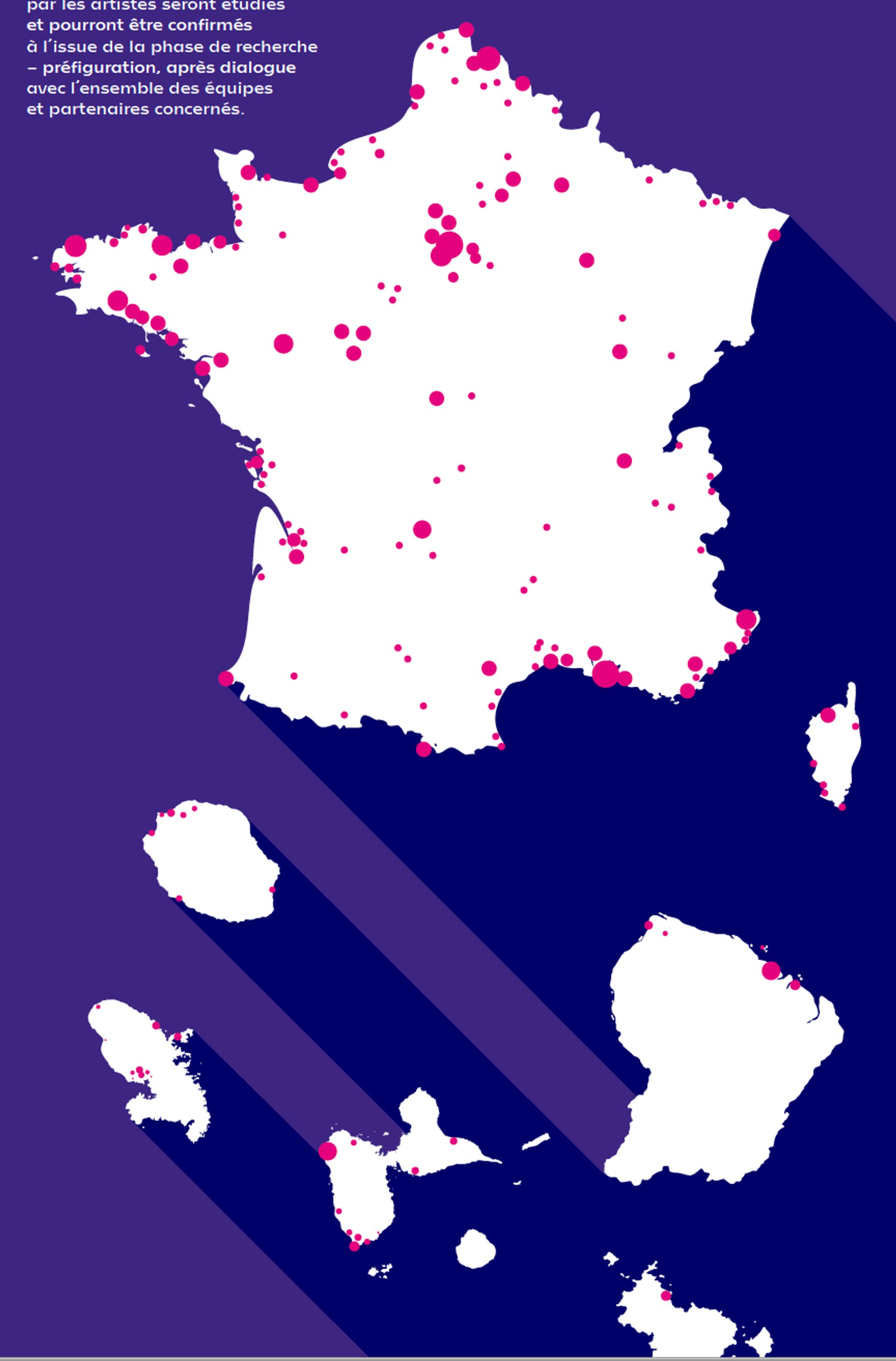 Carte des implantations des projets sélectionnés sur l’ensemble du territoire, outre-mer compris. D.R.