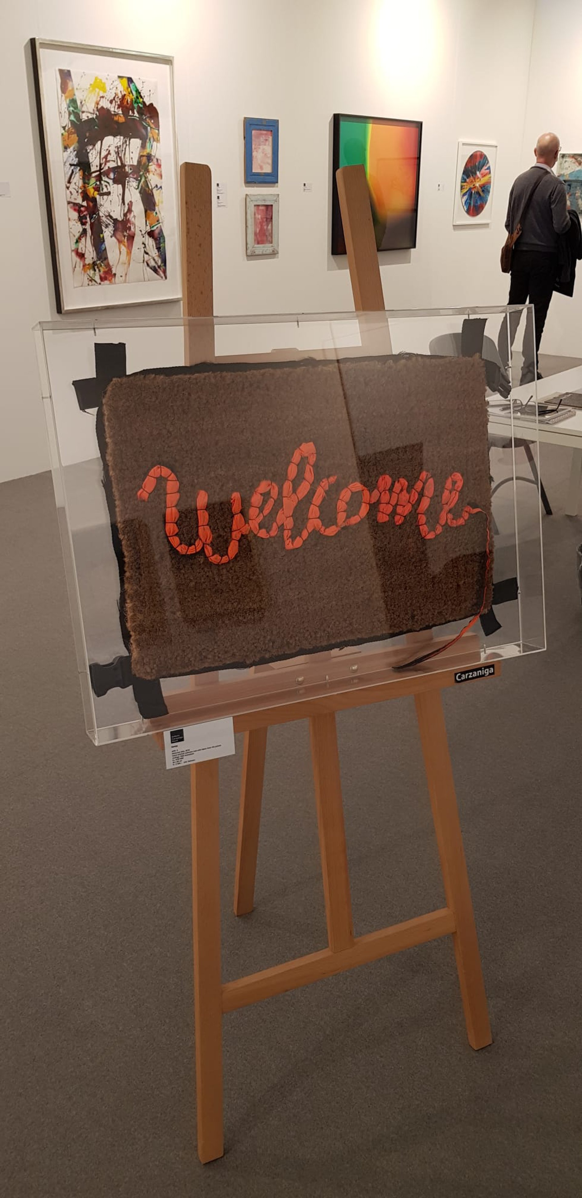 Banksy, Welcome, présenté sur le stand de la galerie Carzaniga de Bâle. Photo: A.C.
