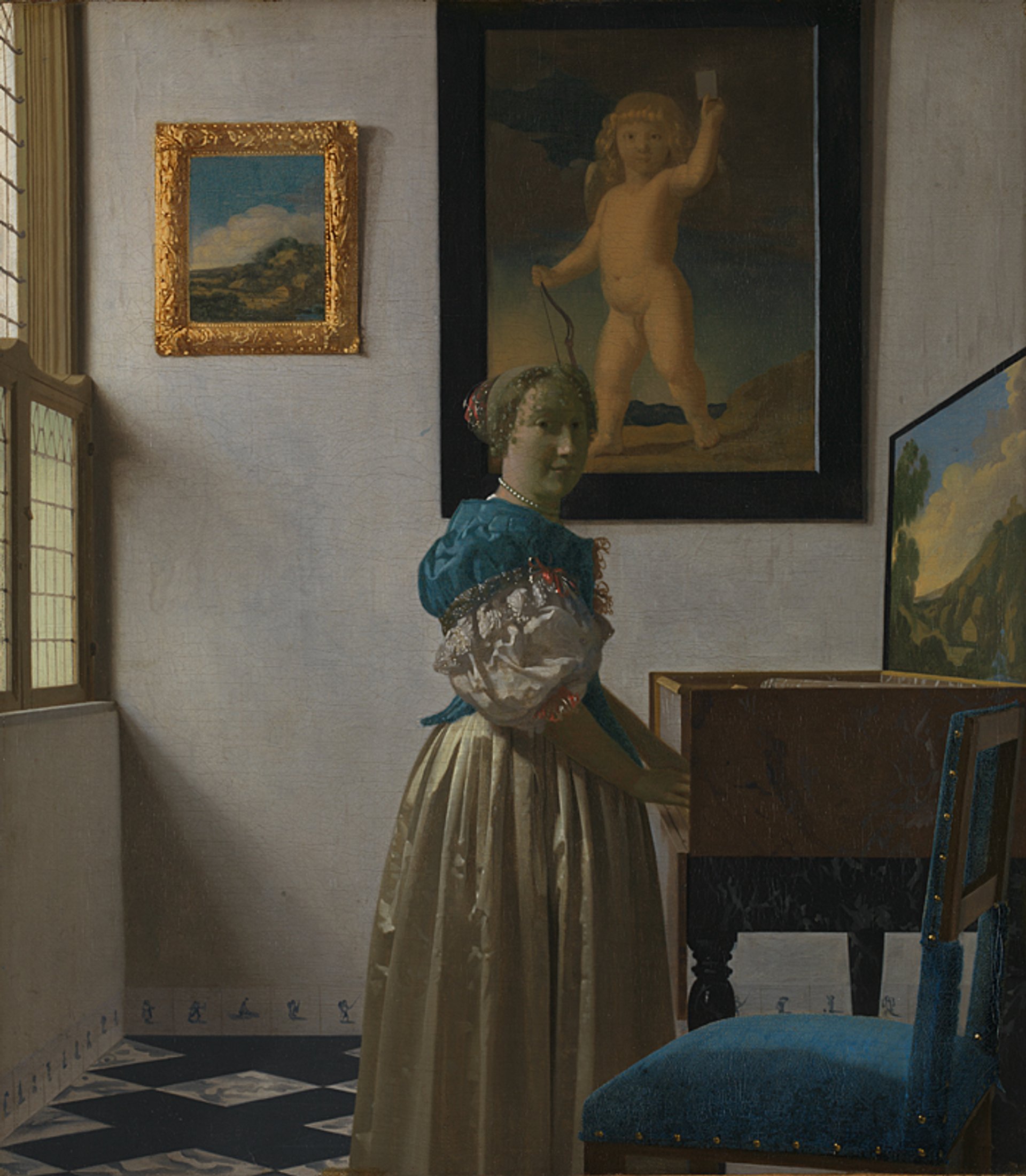Johannes Vermeer, Jeune femme debout au virginal, vers 1670-1672, huile sur toile, 51,7×45,2 cm. © The National Gallery, Londres