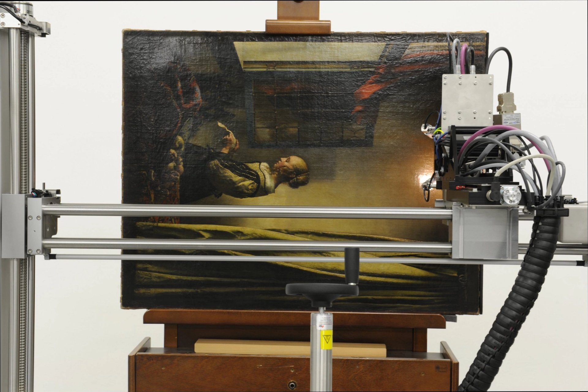 Analyse par fluorescence X de l’œuvre de Johannes Vermeer La Liseuse à la fenêtre, vers 1657-1659. © Gemäldegalerie Alte Meister, Staatliche Kunstsammlungen Dresden. Photo: Maria Körber