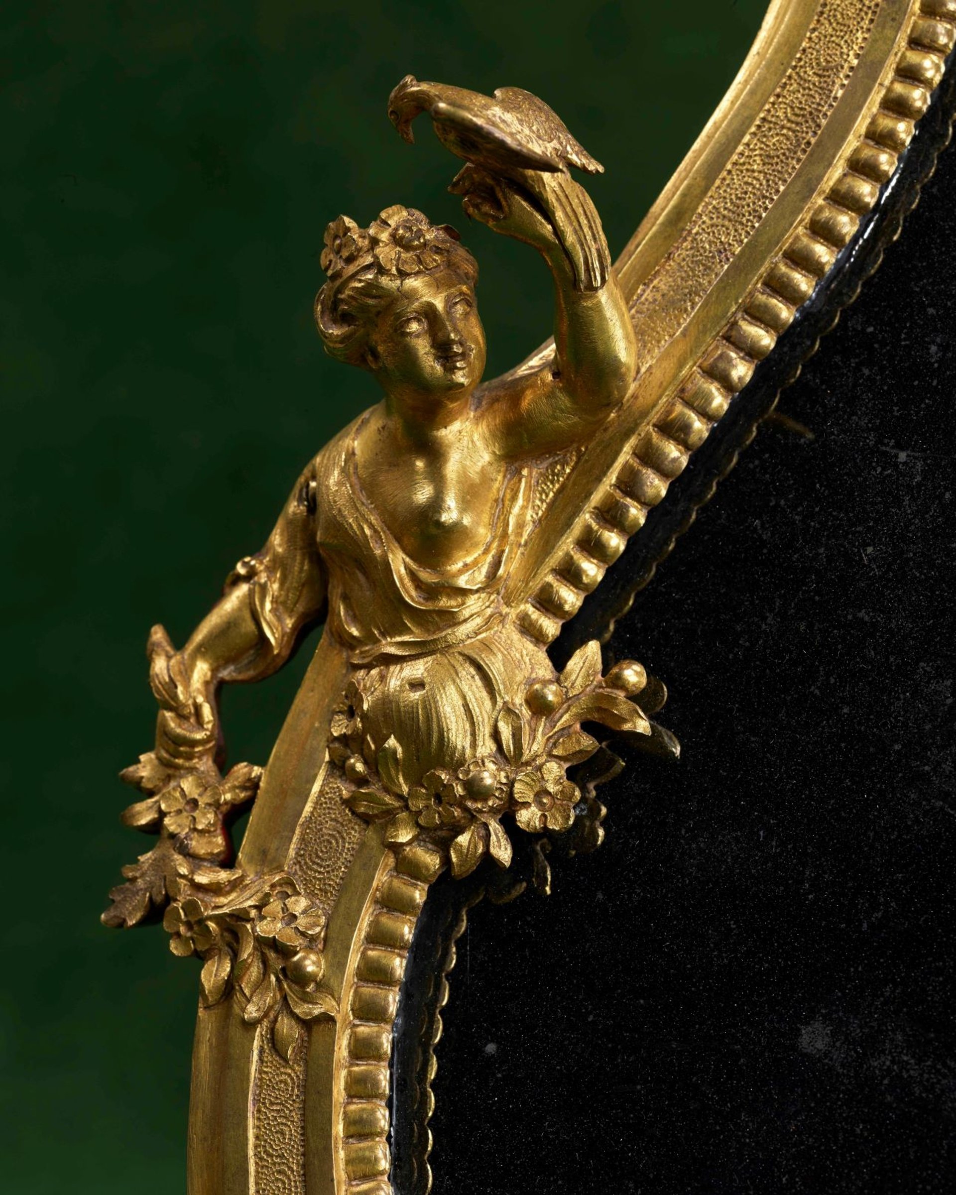 Bronzier parisien, Figure en espagnolette sur le cadre du miroir de toilette de la duchesse de Lorraine, bonze doré, miroir au mercure, 1718, Musée du château de Lunéville. © Paris, galerie Steinitz