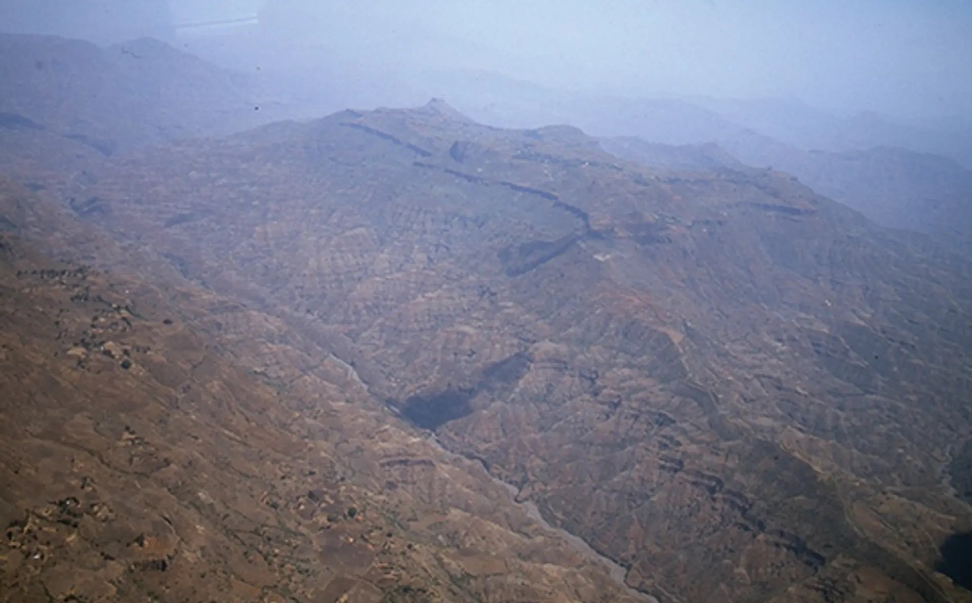 Le monastère de Tadbaba Maryam, qui conserve cette rare icône, est extrêmement difficile d’accès : il se trouve au sommet du plateau situé au milieu de cette photo. © Jacques Mercier