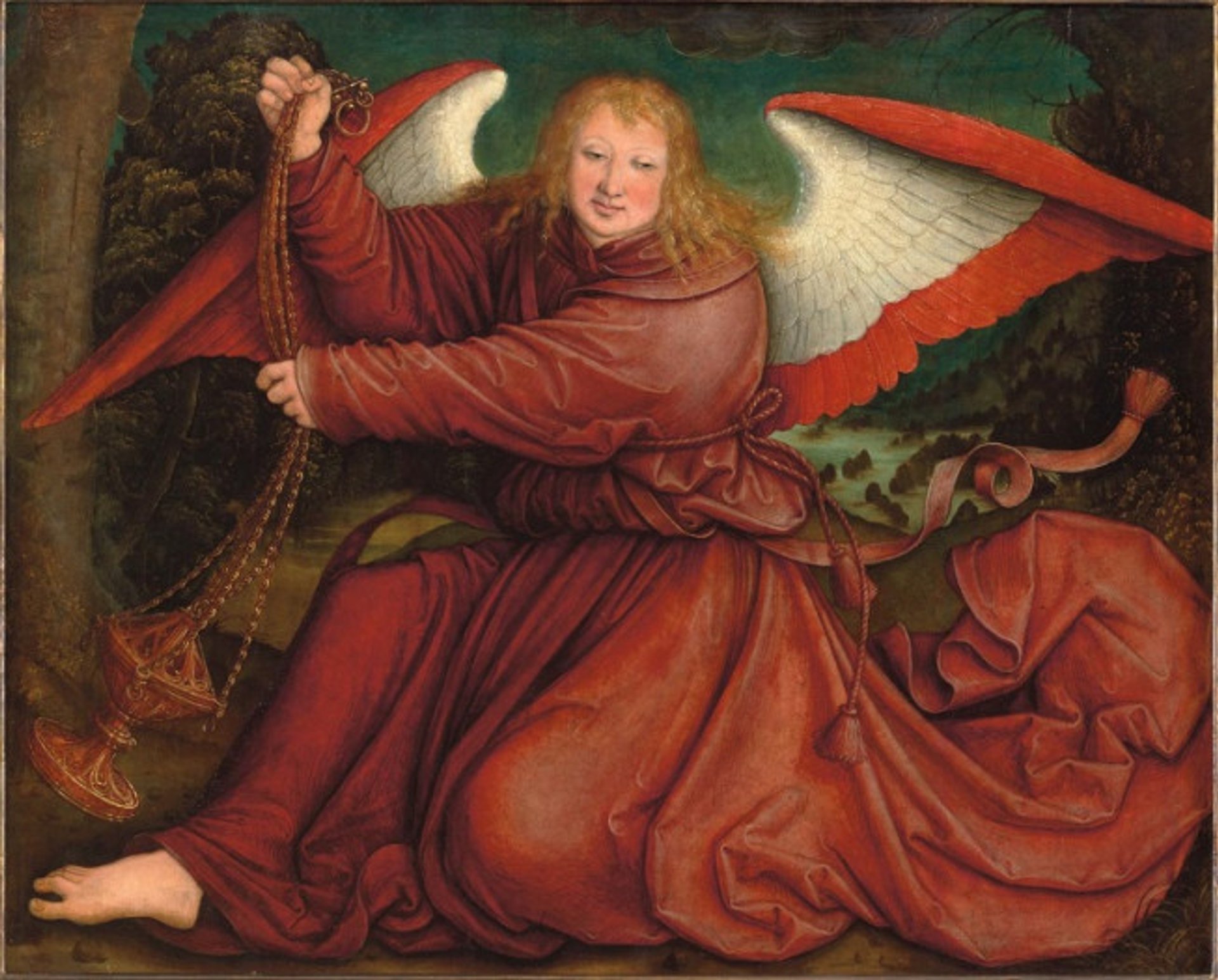 Bernhard Strigel, L’Ange à l’encensoir, vers 1520, huile sur bois, 48×60 cm, Louvre Abu Dhabi. Courtesy Louvre Abu Dhabi