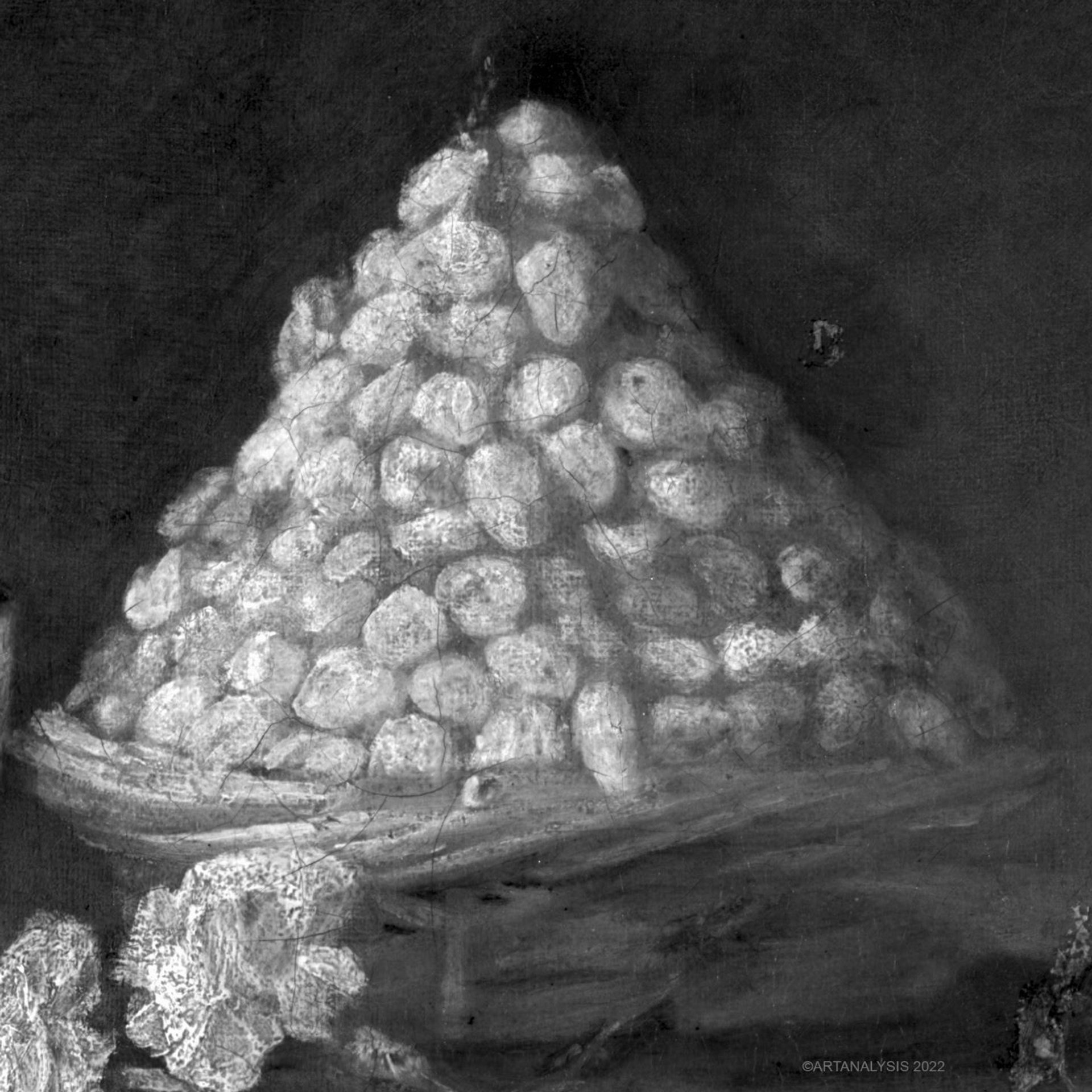 Jean-Baptiste Siméon Chardin (1699-1779), Le Panier de fraises des bois, vues en infrarouge réalisées par Artanalysis pour le Cabinet Turquin. D.R.