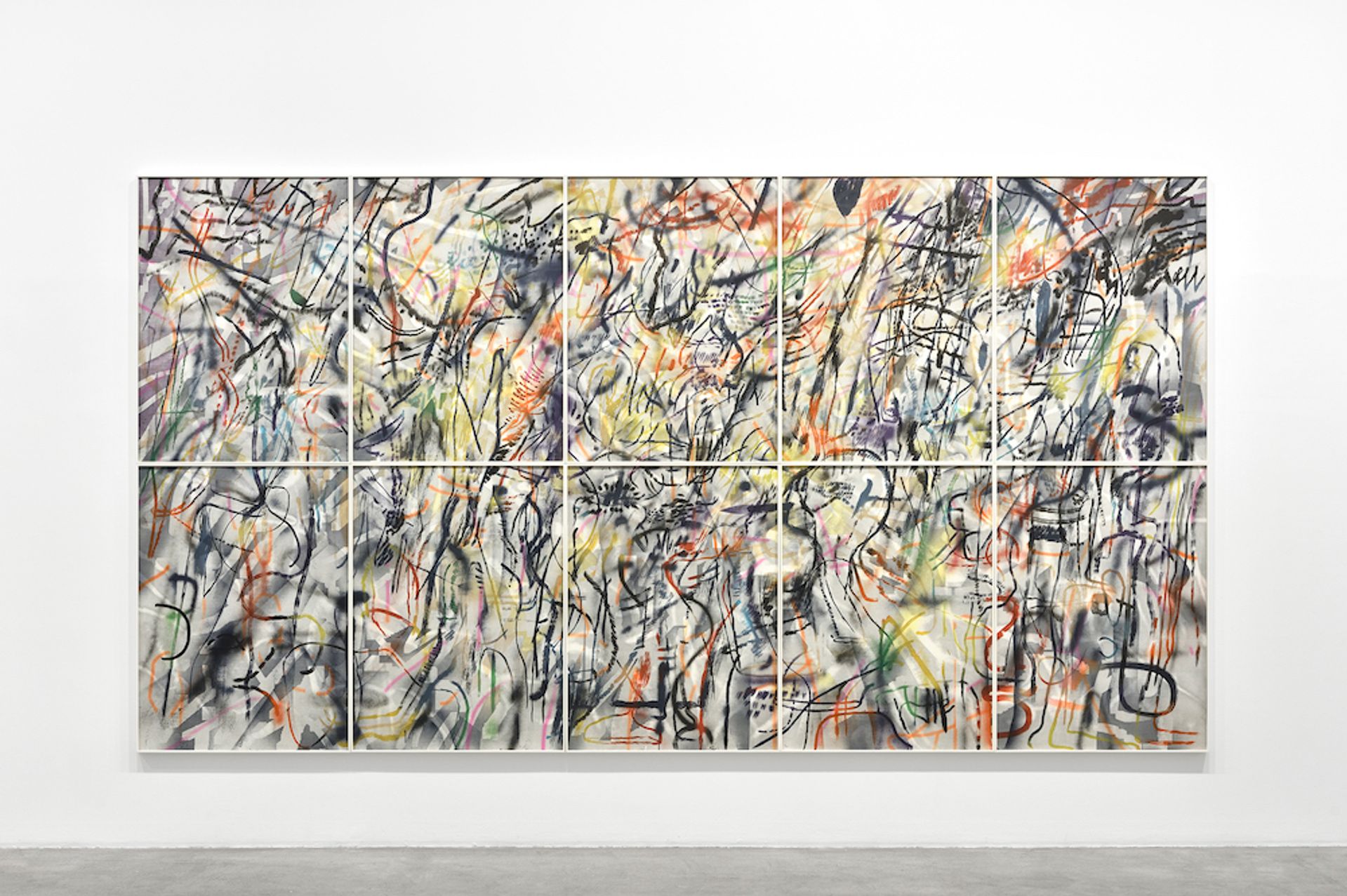 Julie Mehretu, This Manifestation of Historical Restlessness (from Robin’s Intimacy), 2022, 10 panneaux, eau forte, aquatinte. © Julie Mehretu, courtesy galerie Marian Goodman. Photo Rebecca Fanuele