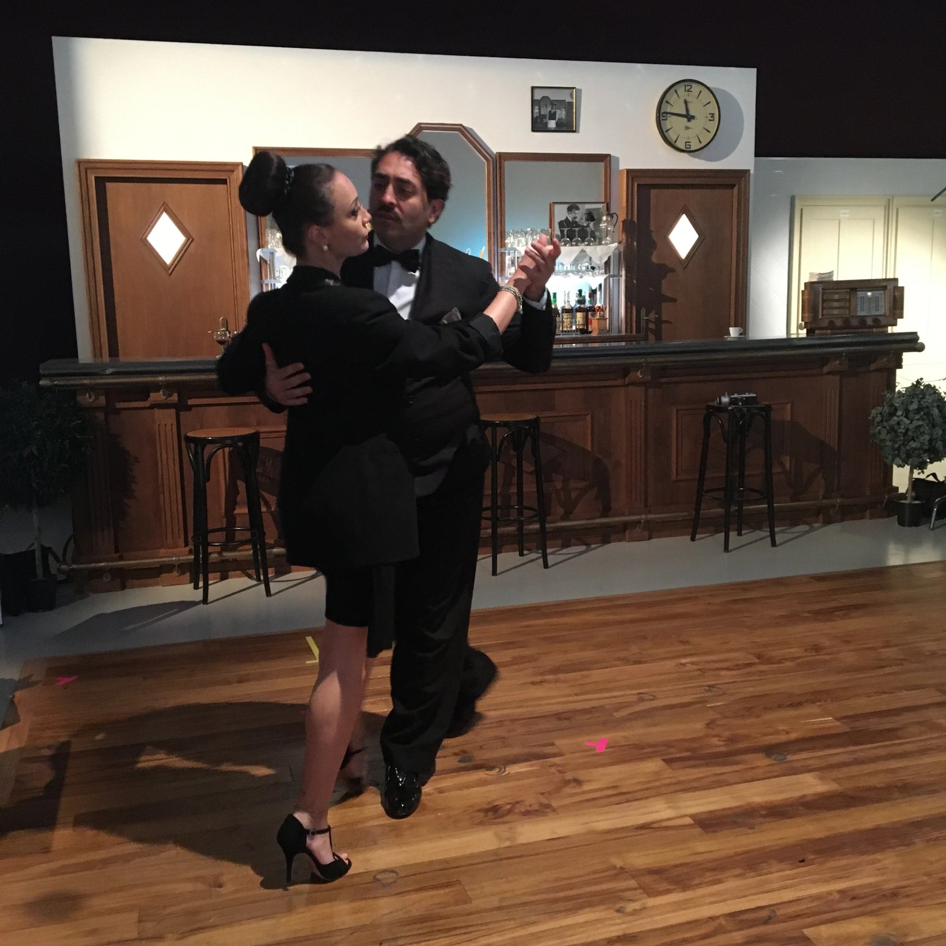 Scène de danse galante dans le café rétro du pavillon français, signé Zineb Sedira. Photo : Stéphane Renault