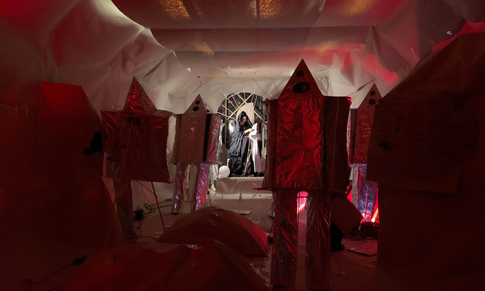 Alors que le Kazakhstan devait exposer pour la première fois à la Biennale de Venise, les installations prévues ne seront pas visibles dans leur intégralité avant le 17 mai, en raison de l’invasion de l’Ukraine par la Russie. Le pavillon devait présenter le projet LAI-PI-CHU-PLEE-LAPA Centre for the New Genius du collectif ORTA, composé des artistes Alexandra Morozova, Rustem Begenov, Darya Jumelya, Alexandr Bakanov et Sabina Kuangaliyeva. À cause du conflit, des éléments nécessaires à la construction de l’œuvre n’ont pas pu être acheminés à temps. Les artistes du collectif ont fabriqué un décor temporaire avec ce dont ils disposaient, qui servira pour des performances. Le pavillon est dédié à la mémoire et à l’héritage de Sergey Kalmykov, peintre russe d’avant-garde, décédé dans un hôpital psychiatrique en 1967, et qui n’a guère été reconnu de son vivant.