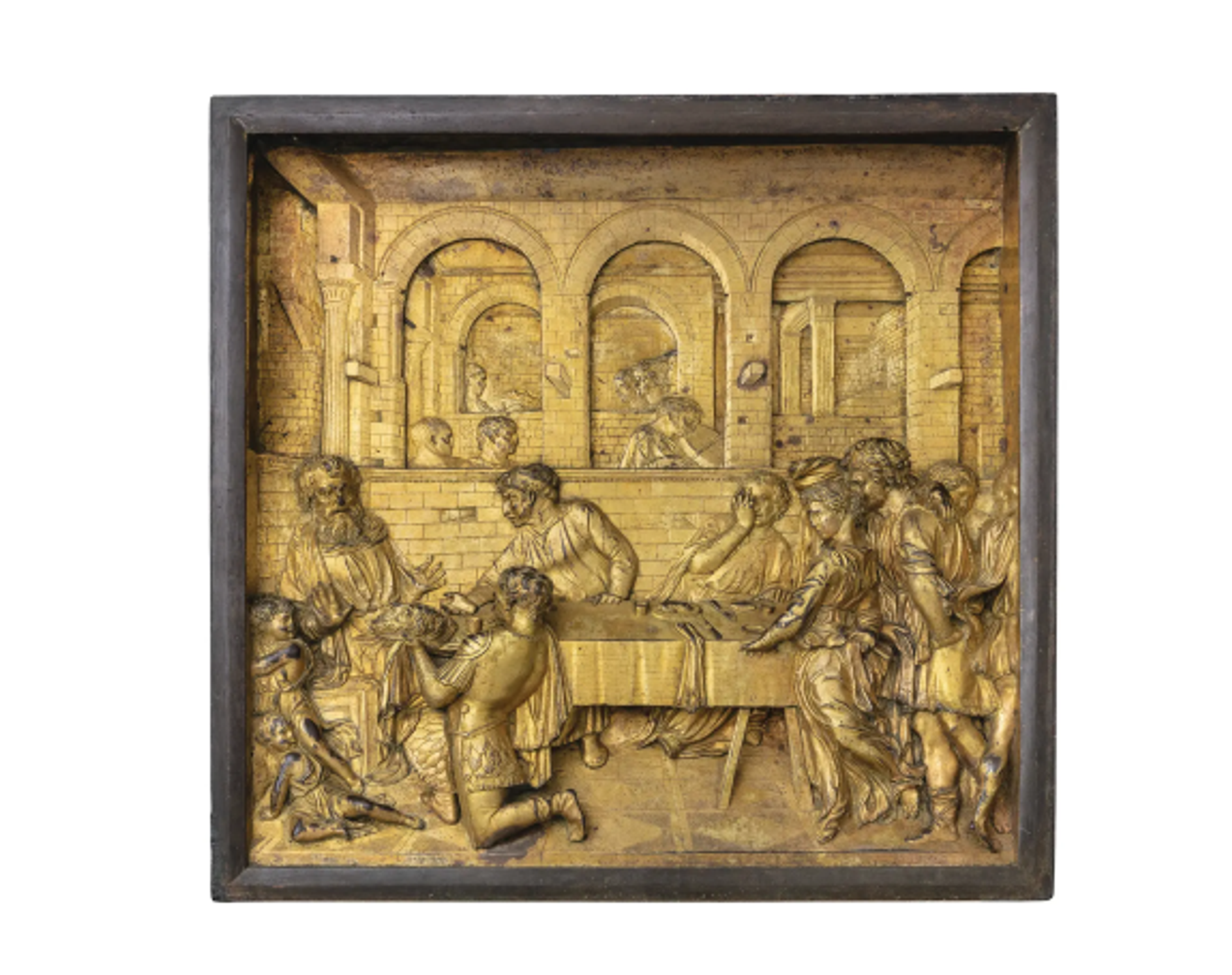 Le Festin d’Hérode (1423–1427), un relief en bronze doré provenant des fonts baptismaux de Sienne est présenté pour la première fois dans une exposition publique. D.R.