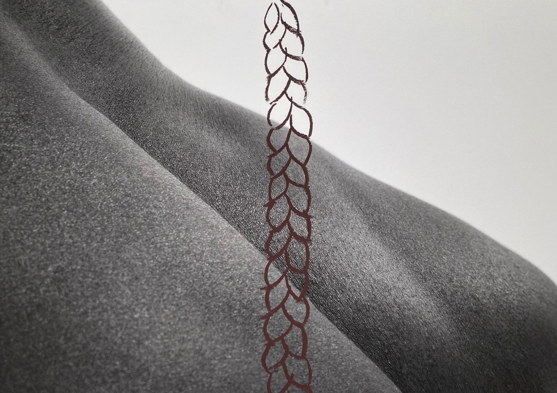 Binta Diaw, Paysage Corporel IV, Série Dïàspora, 2021, 31,5 x 21 cm, dessin à la craie sur impression pigmentaire sur papier fine art. Courtesy de l’artiste