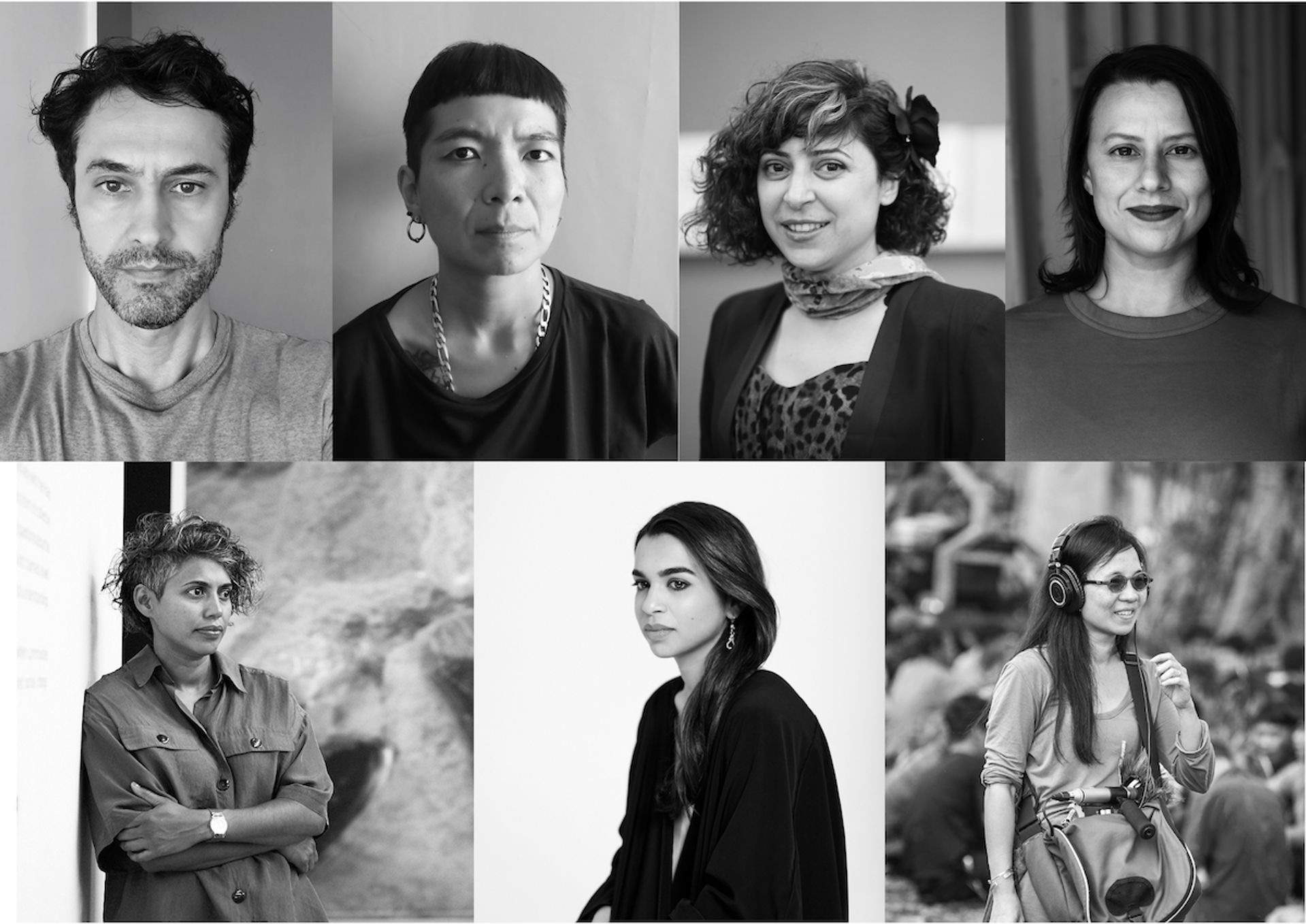 De haut en bas et de gauche à droite : Rushdi Anwar, Naomi Rincón Gallardo, Mounira Al Solh, Carolina Caycedo, Taloi Havini, Alia Farid, Nguyễn Trinh Thi. Courtesy Artes Mundi