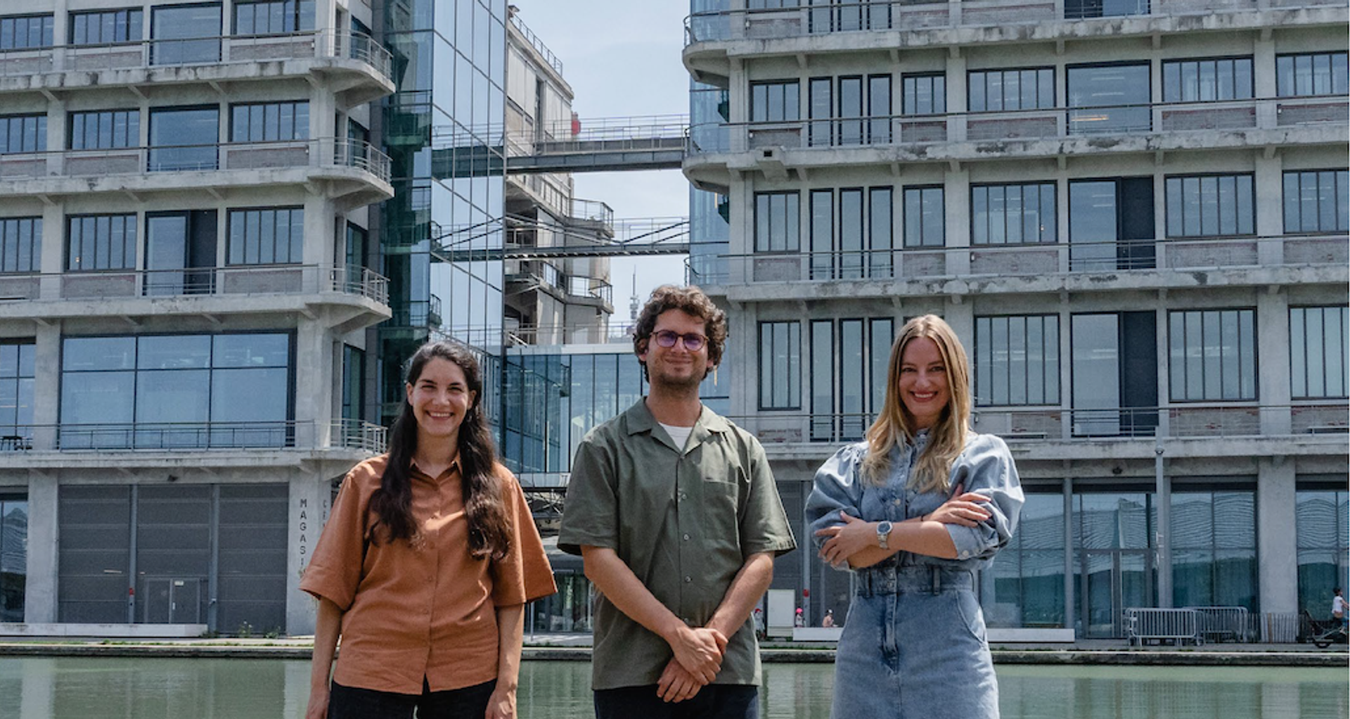 Anna Labouze, Keimis Henni et Julia Dartois devant les Magasins généraux. © Mathis Payet Descombes - Magasins généraux