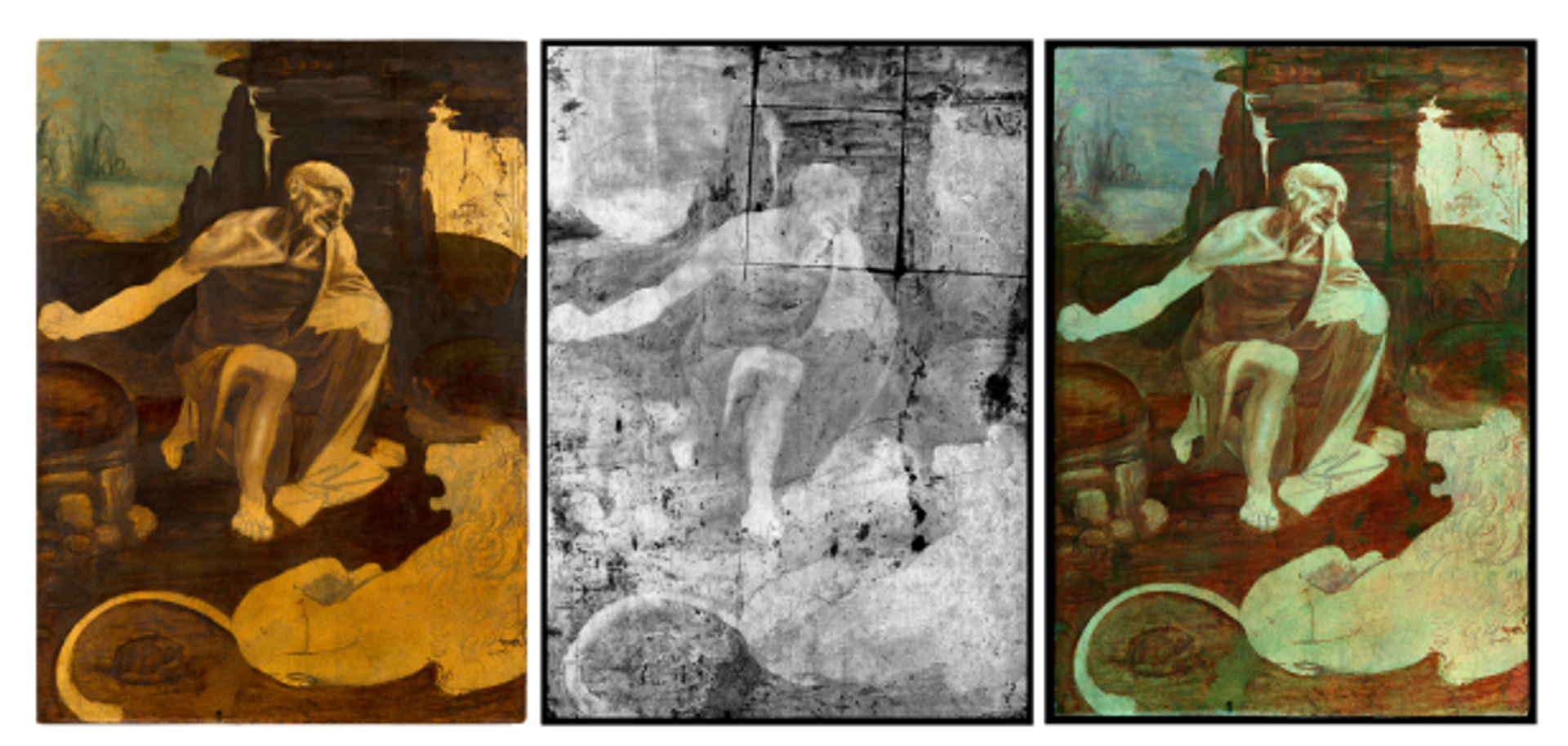 Léonard de Vinci, Saint Jérôme au désert. Analyse scientifique, réflectographie infrarouge et fluorescence UV. © Gouvernorat de l’État de la Cité du Vatican – Musées du Vatican. Tous droits réservés