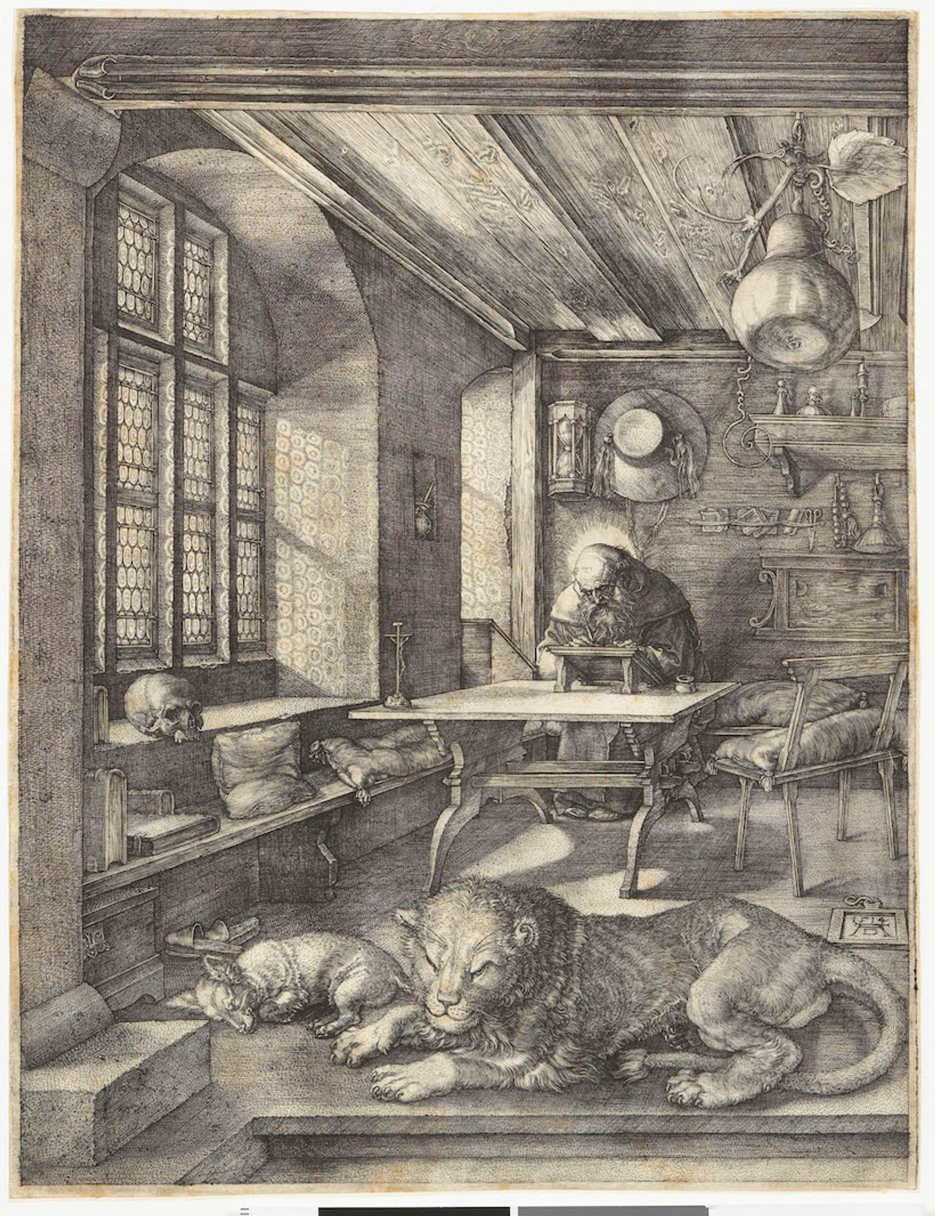 Albrecht Dürer, Saint Jérôme dans sa cellule, 1514, burin, musée Condé, EST 234