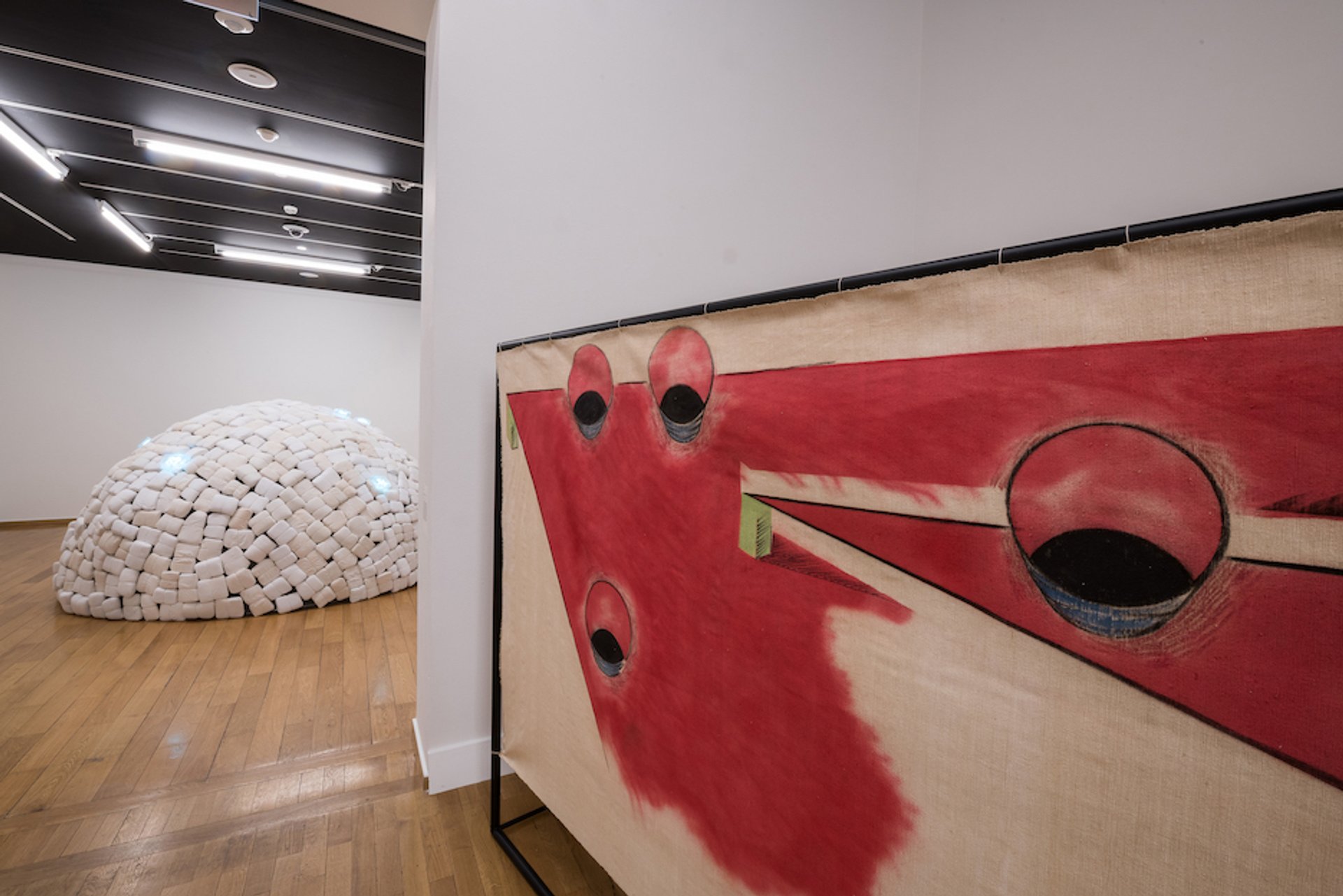 « Toute l’œuvre de Mario et Marisa Merz est traversée par l’idée de l’origine, analyse Marc-Olivier Walher qui opère le rapprochement entre les travaux des deux artistes et les collections de l’institution qu’il dirige. Un musée encyclopédique tel que le MAH parcourt toutes les époques. Construire un igloo, c’est revenir à la forme originelle de l’abri, tout comme façonner un visage dans l’argile, c’est refaire des gestes qui ne sont pas tellement éloignés des vestiges archéologiques que nous exposons. »
