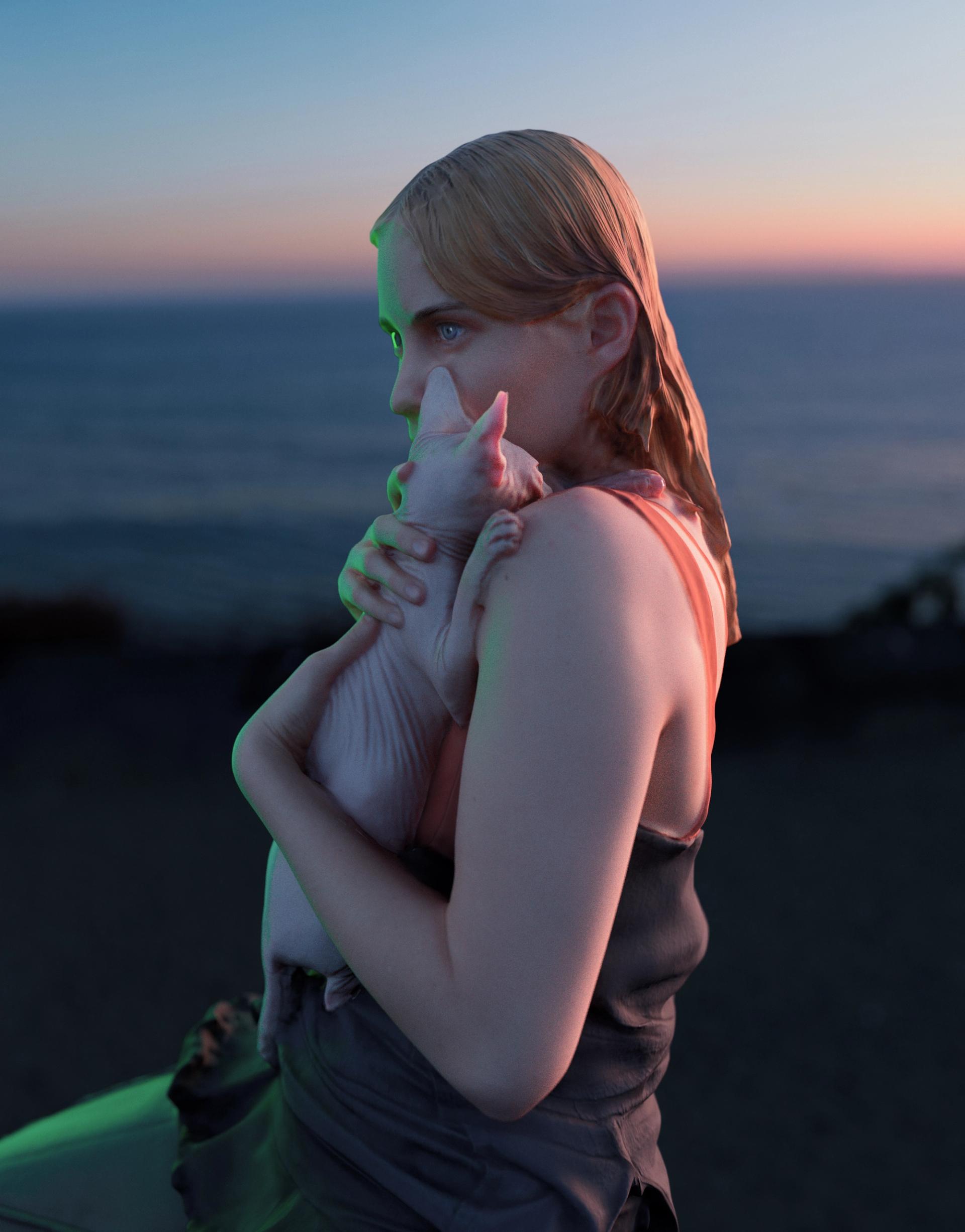 Pour accompagner la musique de son nouvel album, Folle Machine, Owlle a fait appel à Gourau & Phong, alias Benjamin Roulet et François Bellabas, un duo de photographes français passés par l’École nationale supérieure de la photographie d’Arles qui conçoit des images virtuelles en trois dimensions. Le résultat est à la fois onirique et déstabilisant, chaotique et étrange. Un art numérique que l’artiste pop a appris à apprécier. Ses références sont plutôt à chercher du côté de Pierre Huyghe, Ernesto Neto, Anish Kapoor, Cindy Sherman et Cyprien Gaillard. Des artistes qui travaillent sur l’hybridation, l’organique et le mécanique, le rapport au corps et à l’identité. « Ce qui me plaît chez eux, c’est le côté fiction, l’idée de transformation. Le lévrier blanc à la patte rose de Pierre Huyghe m’a inspiré le sphynx, ce chat nu présent sur toutes les images de mon album. » Owlle sait bien que la pochette de son nouvel album n’est pas la plus commerciale. Mais elle est fidèle à sa volonté d’expérimenter. « Aujourd’hui, en musique, pour exister, il faut avoir une image très formatée. Mon but n’est pas de faire du chiffre, mais de proposer une œuvre globale. Ce n’est pas juste un album, c’est un tout. » Owlle vole au milieu de vents contraires. Sa musique touche les millions de téléspectateurs qui regardent la série Emily in Paris sur Netflix. Elle ne rêve que de préparer une performance sur mesure pour l’auditorium de la Bourse de Commerce – Pinault Collection. La chanteuse échappe aux codes conventionnels. En France, elle déstabilise. Selon elle, les Anglo-saxons sont plus ouverts. Au fil du temps, l’ancienne étudiante aux Beaux-Arts et l’artiste pop sont de plus en plus sur la même ligne, une trajectoire connectée à la nouvelle scène de l’art contemporain. Pour son prochain live, qui sera en tournée en avril, elle s’est ainsi rapprochée des plasticiens Salomé Chatriot et Samuel Fasse. « J’avais été marquée par une de leurs installations, repérée sur Instagram, une sorte de structure en métal modulable. Cela m’a rappelé un projet que j’avais créé au Pavillon Bosio. » Sur scène, Owlle sera la protagoniste de leur œuvre Look How I am Morphing. La scénographe a hâte de s’approprier ce nouvel espace.